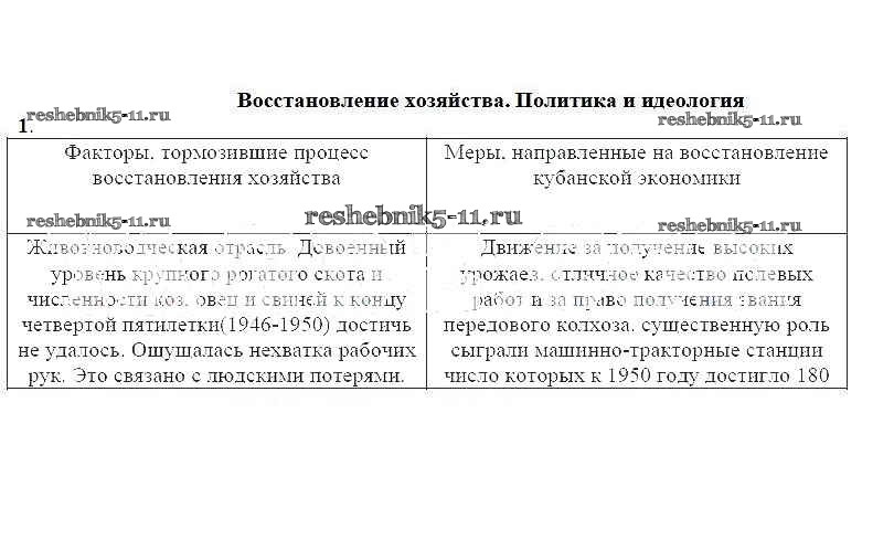 Готовая домашняя работа с ответами по Кубановедению за 9 класс Лунева Рабочая тетрадь Перспективы образования 2018 - 18. Восстановление хозяйства. Политика и идеология 1