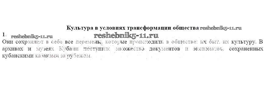 Готовая домашняя работа с ответами по Кубановедению за 9 класс Лунева Рабочая тетрадь Перспективы образования 2018 - 26. Культура в условиях трансформации общества 1
