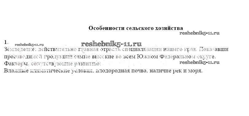 Готовая домашняя работа с ответами по Кубановедению за 9 класс Лунева Рабочая тетрадь Перспективы образования 2018 - 30. Особенности сельского хозяйства 1