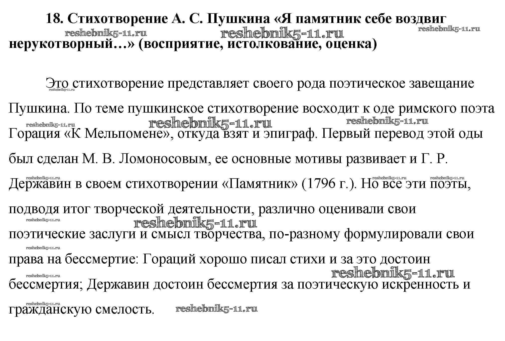 Решебник / сочинение / 18. Стихотворение А. С. Пушкина «Я памятник себе воздвиг нерукотворный…» (восприятие, истолкование, оценка)