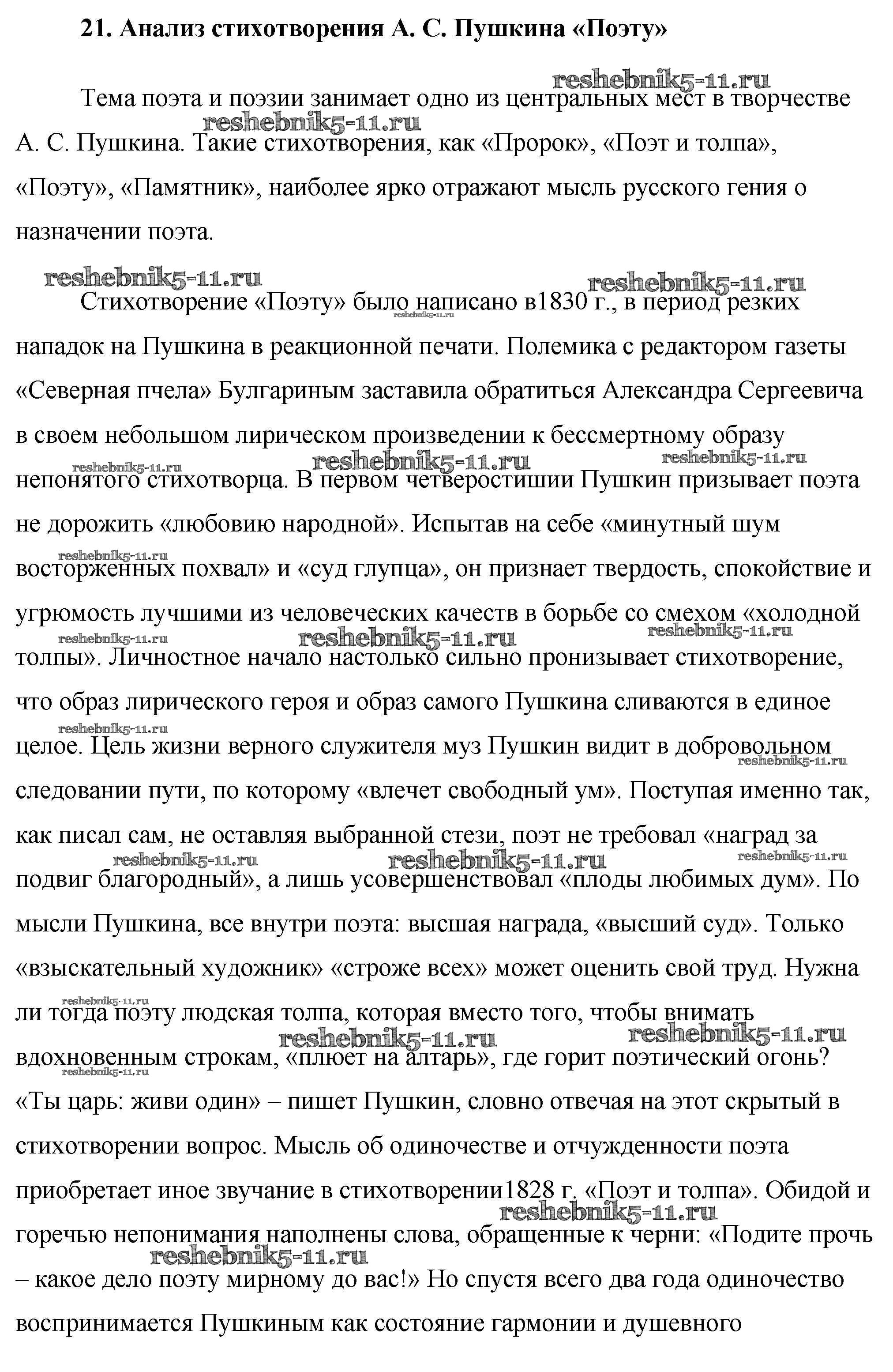 21. Анализ стихотворения А. С. Пушкина «Поэту»
