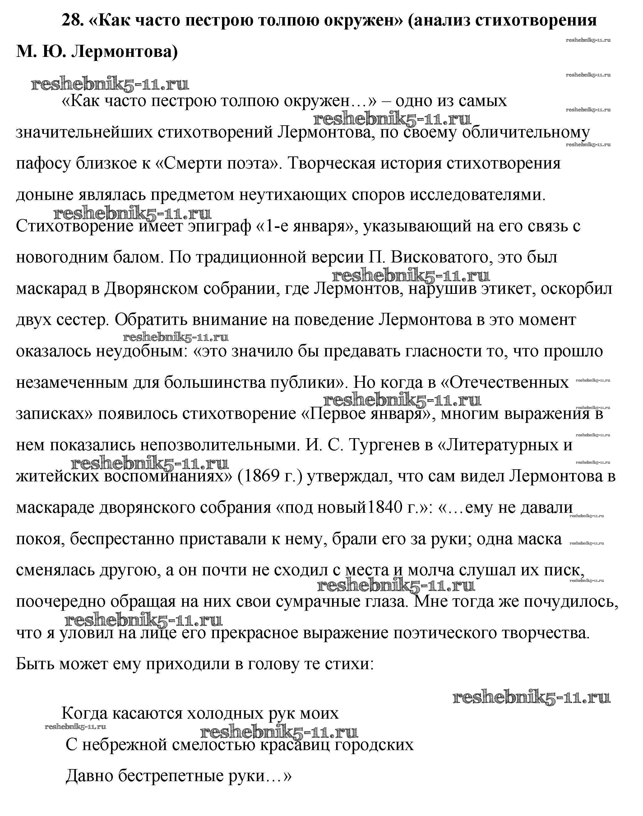 Решебник / сочинение / 28. «Как часто пестрою толпою окружен» (анализ стихотворения М. Ю. Лермонтова)