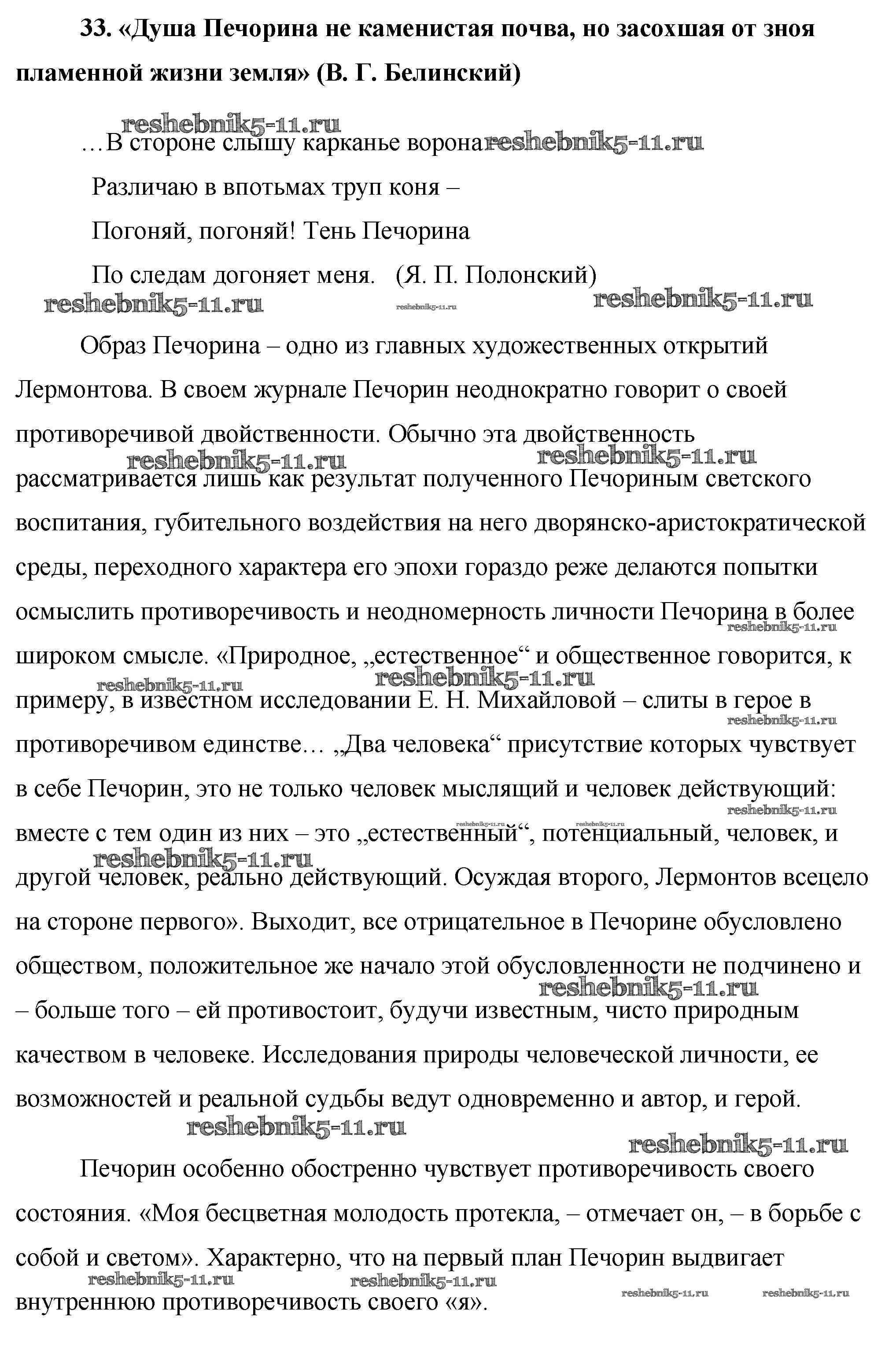 33. «Душа Печорина не каменистая почва, но засохшая от зноя пламенной жизни земля» (В. Г. Белинский)