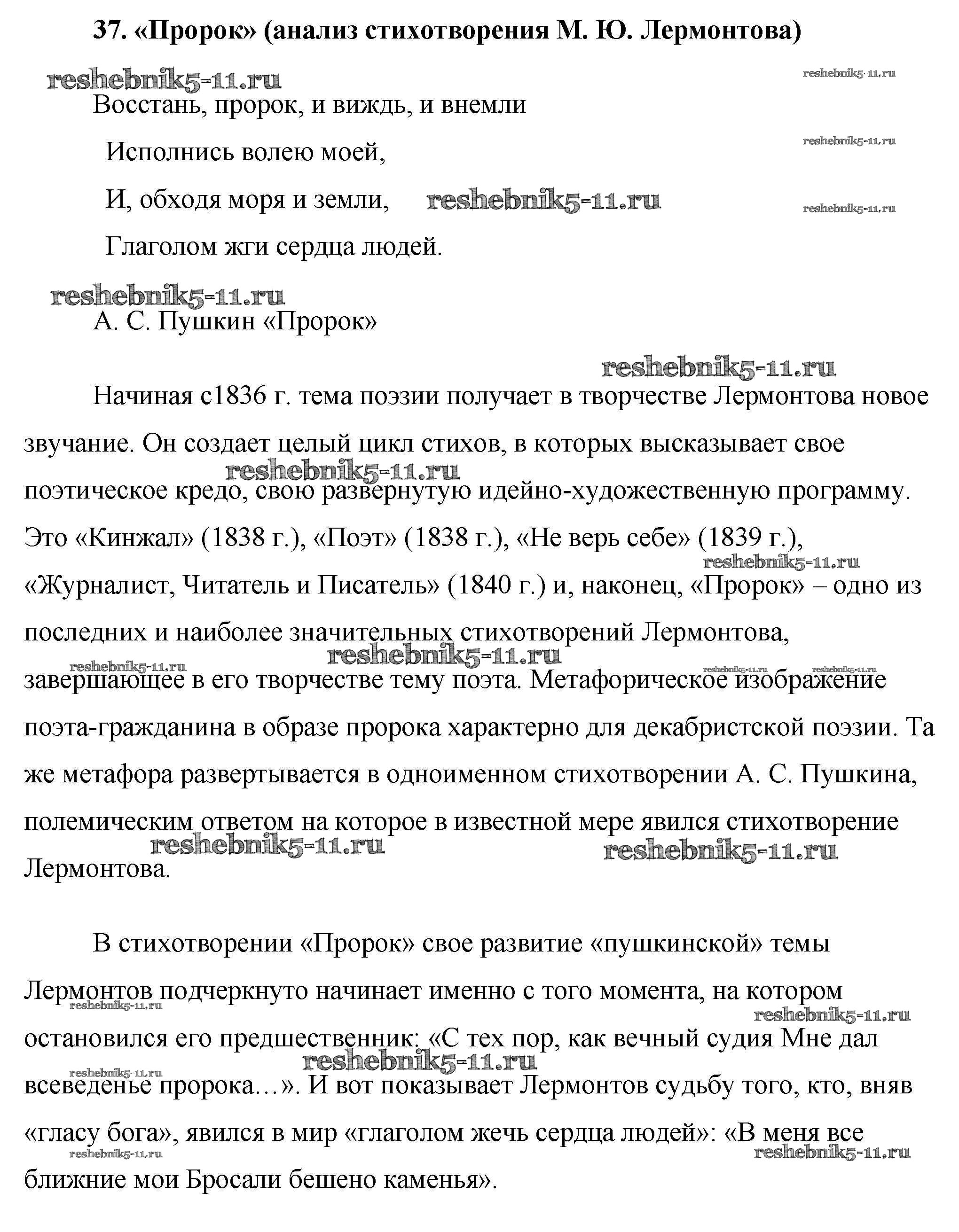 Решебник / сочинение / 37. «Пророк» (анализ стихотворения М. Ю. Лермонтова)