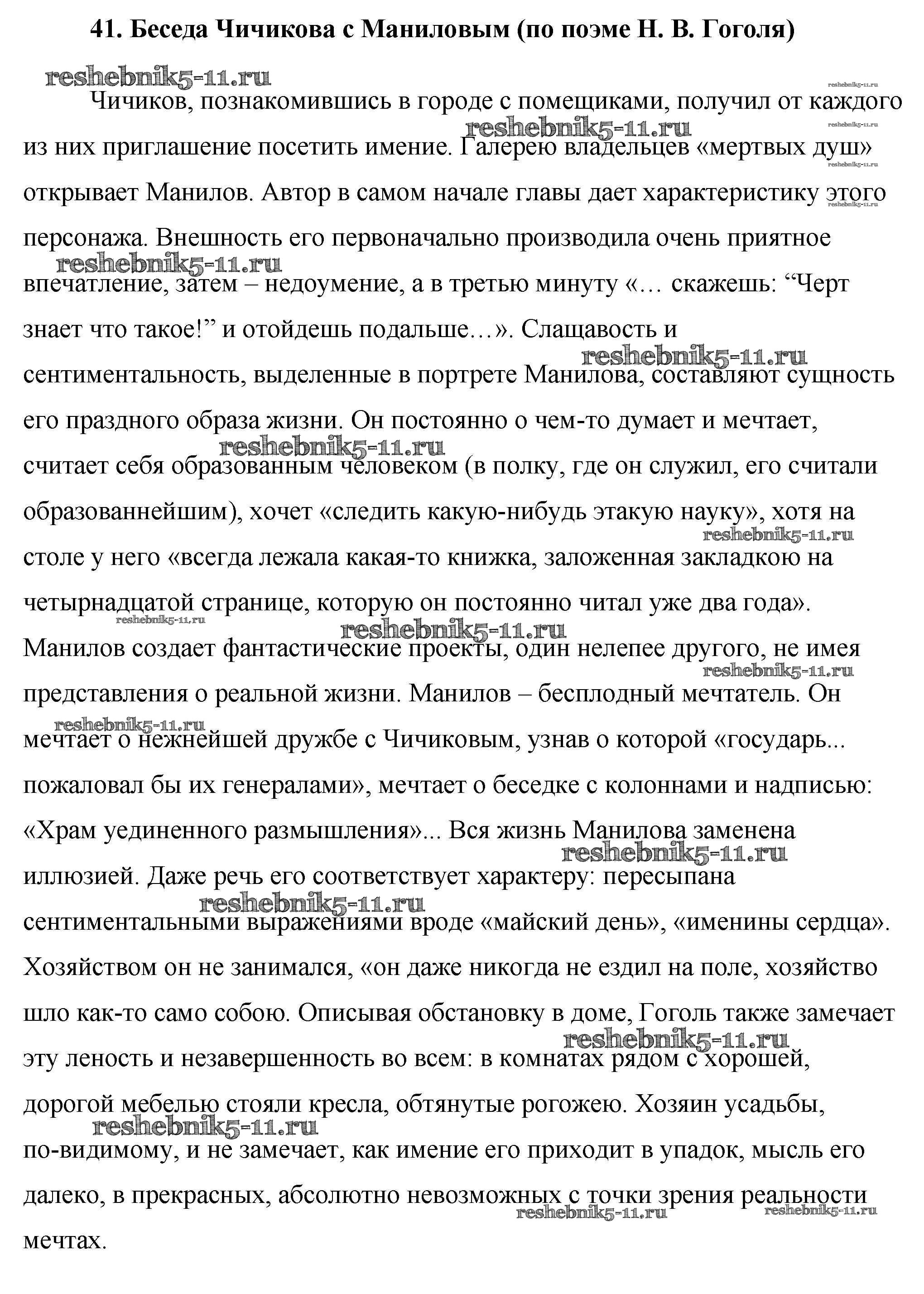 Литература за 9 класс Еременко Сочинения Сам себе репетитор ВАКО сочинение 41. Беседа Чичикова с Маниловым (по поэме Н. В. Гоголя)
