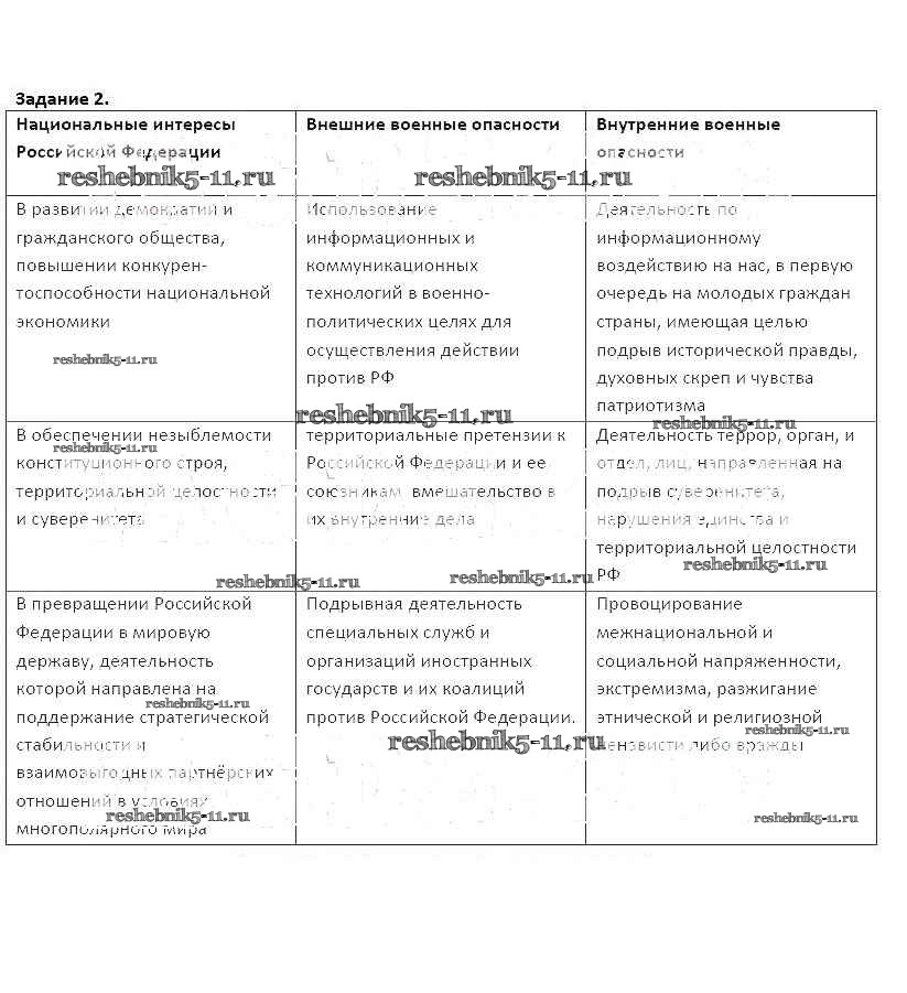 Готовая домашняя работа с ответами по ОБЖ за 9 класс Подолян Рабочая тетрадь Дрофа 2018 ФГОС - Глава 1. Национальная безопасность России в современном мире 2