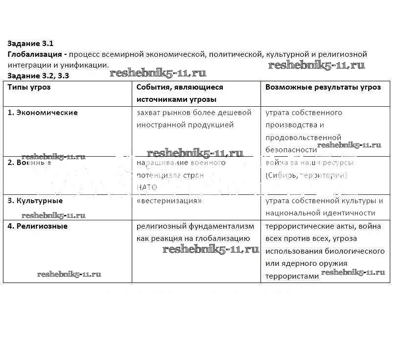 Готовая домашняя работа с ответами по ОБЖ за 9 класс Подолян Рабочая тетрадь Дрофа 2018 ФГОС - Глава 1. Национальная безопасность России в современном мире 3