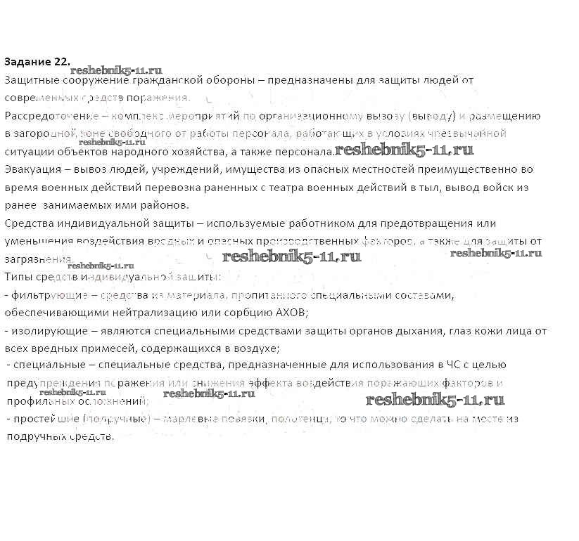 Готовая домашняя работа с ответами по ОБЖ за 9 класс Подолян Рабочая тетрадь Дрофа 2018 ФГОС - Глава 2. Организация защиты населения и территорий от чрезвычайных ситуаций природного и техногенного характера 22