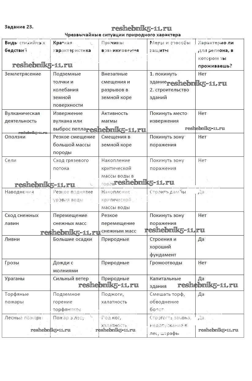 Готовая домашняя работа с ответами по ОБЖ за 9 класс Подолян Рабочая тетрадь Дрофа 2018 ФГОС - Глава 2. Организация защиты населения и территорий от чрезвычайных ситуаций природного и техногенного характера 23