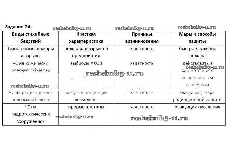 Готовая домашняя работа с ответами по ОБЖ за 9 класс Подолян Рабочая тетрадь Дрофа 2018 ФГОС - Глава 2. Организация защиты населения и территорий от чрезвычайных ситуаций природного и техногенного характера 24