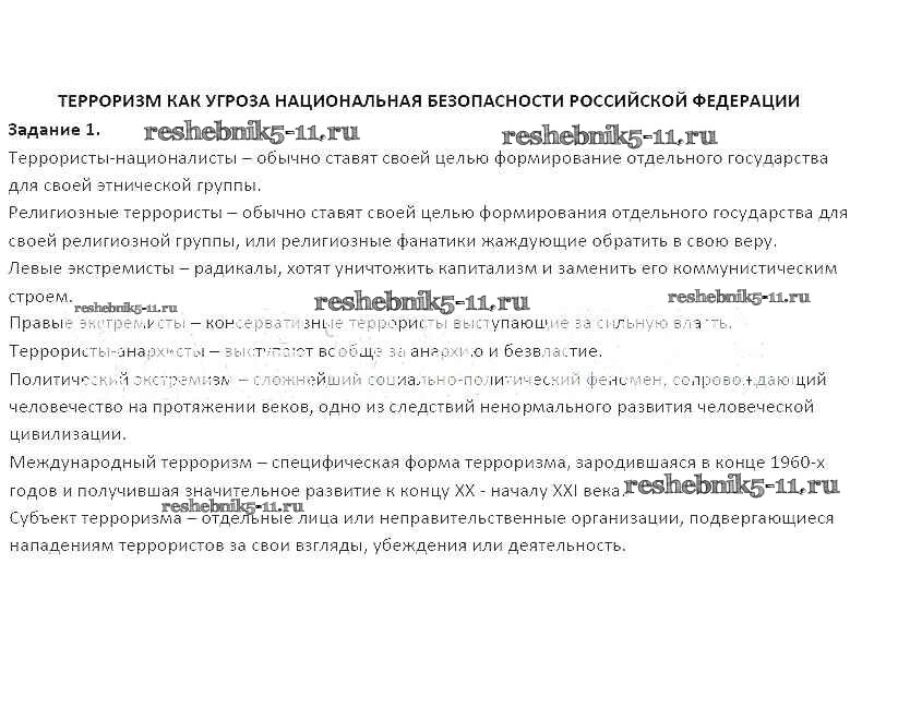 Готовая домашняя работа с ответами по ОБЖ за 9 класс Подолян Рабочая тетрадь Дрофа 2018 ФГОС - Глава 3. Терроризм как угроза национальной безопасности Российской Федерации 1