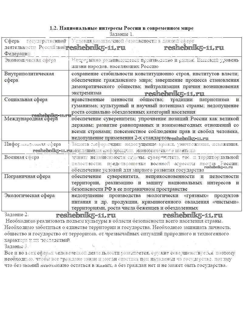 ОБЖ за 9 класс Смирнов Рабочая тетрадь Просвещение глава 1 1.2