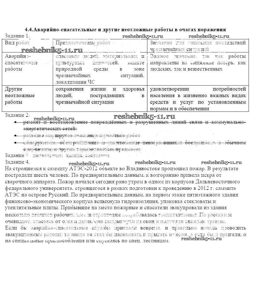 Готовая домашняя работа с ответами по ОБЖ за 9 класс Смирнов, Хренников, Маслов Рабочая тетрадь Просвещение 2018 ФГОС - Глава 4 4.4