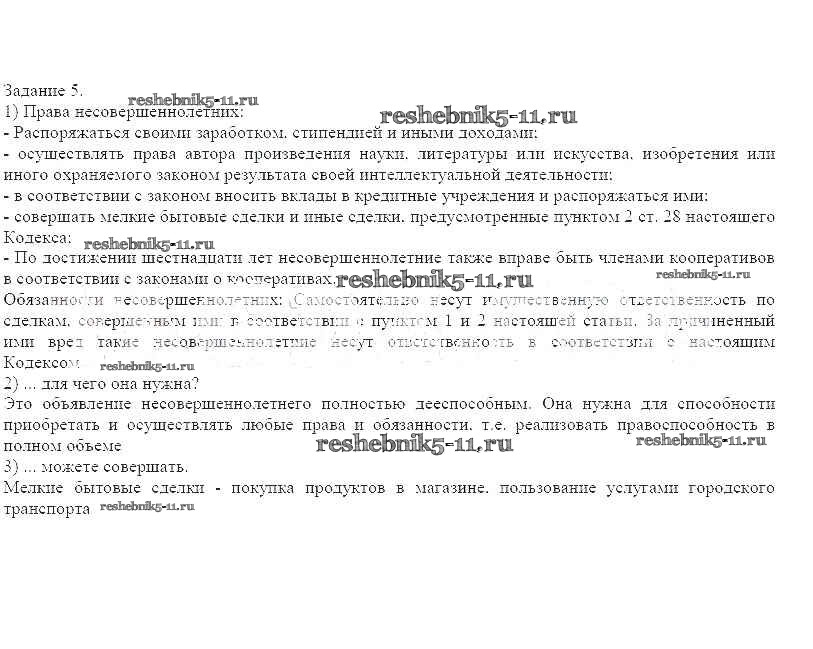 Обществознание за 9 класс Митькин Рабочая тетрадь УМК Экзамен параграф 9 (задание) 5