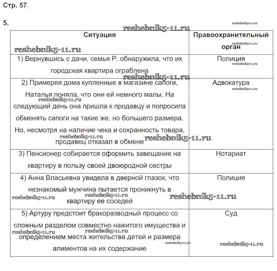 Готовая домашняя работа с ответами по Обществознанию за 9 класс Котова, Лискова Рабочая тетрадь УМК Просвещение 2016 ФГОС - Страницы 57