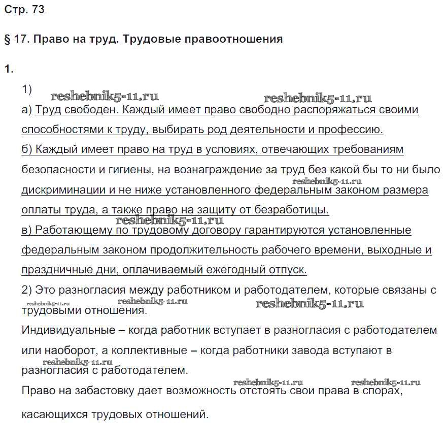 Готовая домашняя работа с ответами по Обществознанию за 9 класс Котова, Лискова Рабочая тетрадь УМК Просвещение 2016 ФГОС - Страницы 73