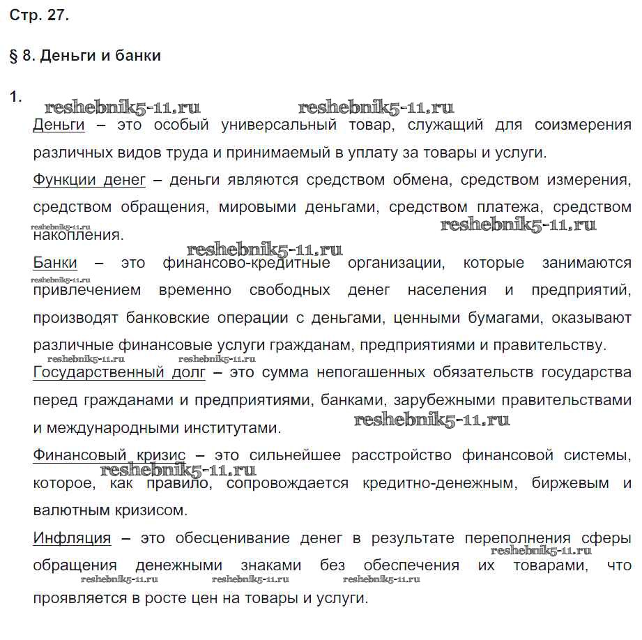 Готовая домашняя работа с ответами по Обществознанию за 9 класс Федорова Рабочая тетрадь Вертикаль Дрофа 2019 ФГОС - Страницы 27