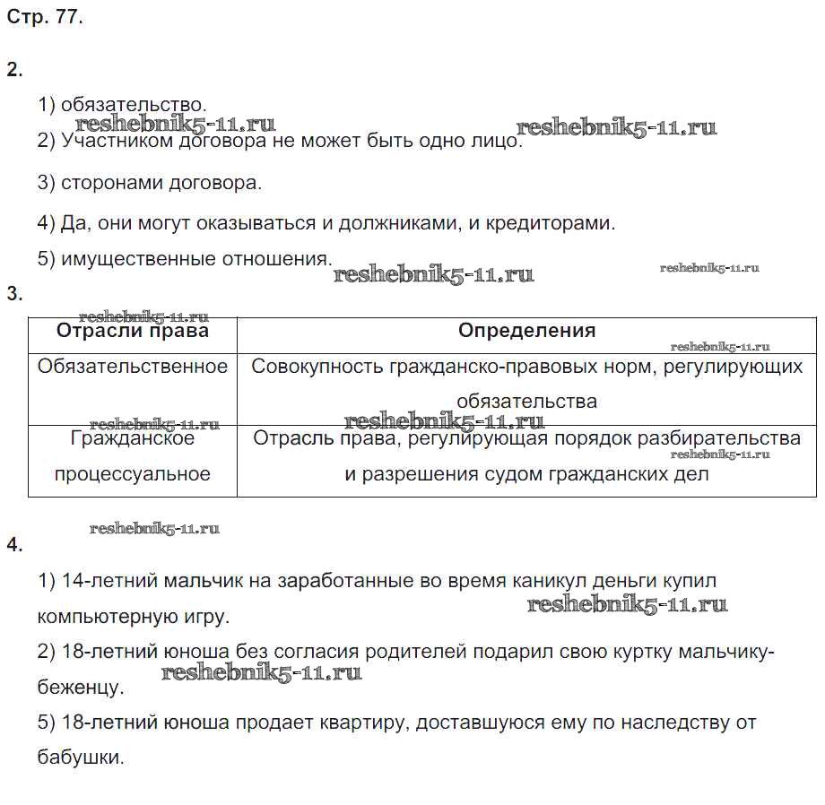 Готовая домашняя работа с ответами по Обществознанию за 9 класс Федорова Рабочая тетрадь Вертикаль Дрофа 2019 ФГОС - Страницы 77