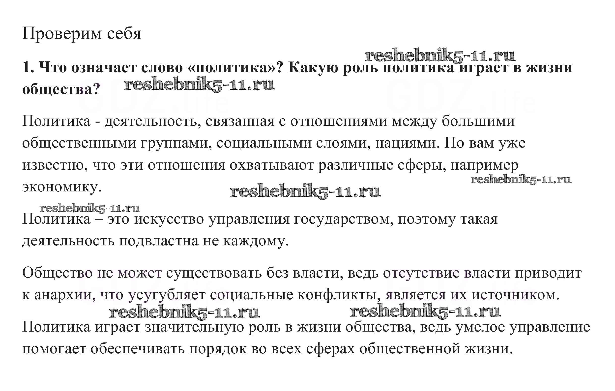 Готовая домашняя работа с ответами по Обществознанию за 9 класс Боголюбов, Матвеев, Жильцова Учебник УМК Просвещение 2014 ФГОС - Проверим себя 1