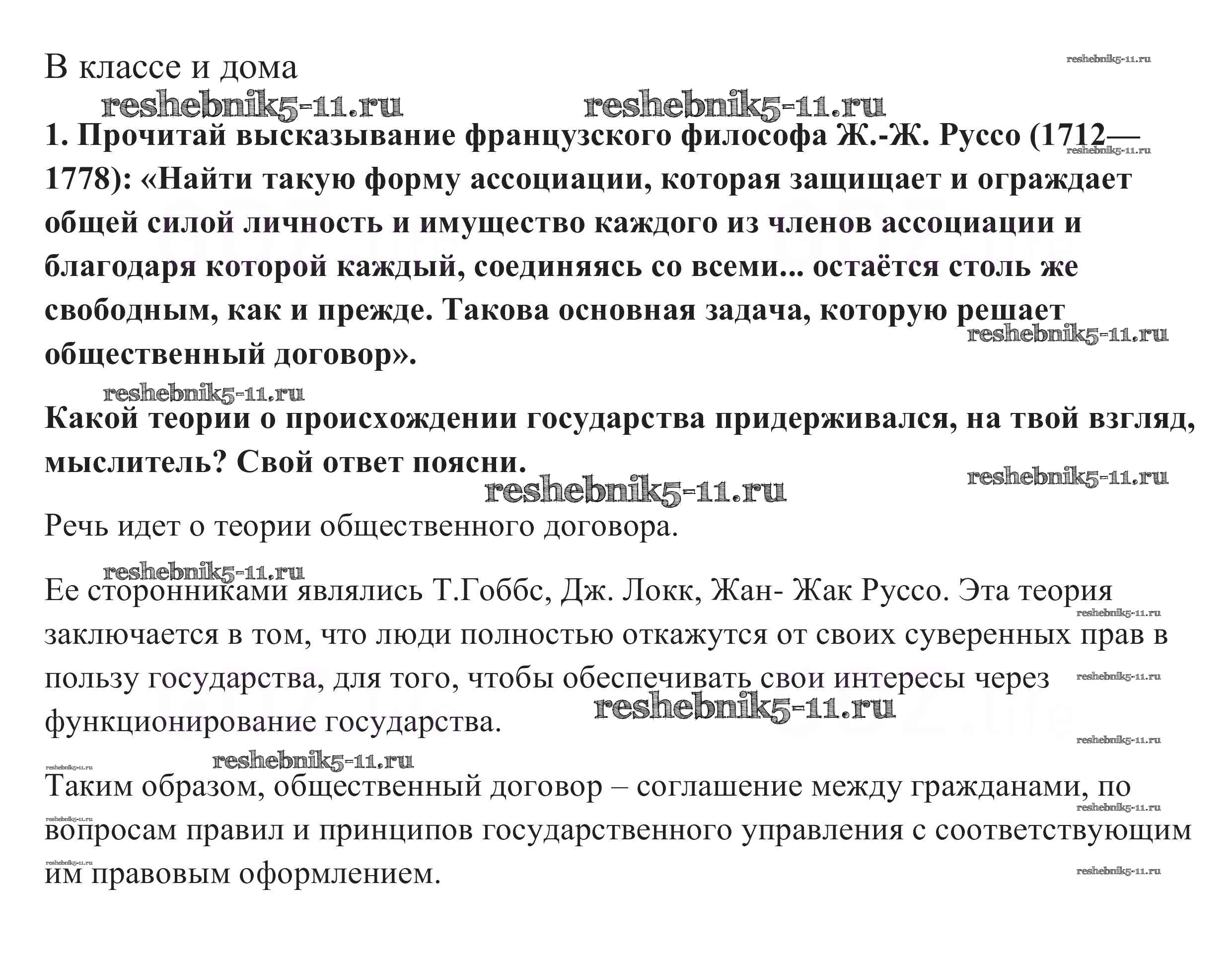 Готовая домашняя работа с ответами по Обществознанию за 9 класс Боголюбов, Матвеев, Жильцова Учебник УМК Просвещение 2014 ФГОС - В классе и дома 1