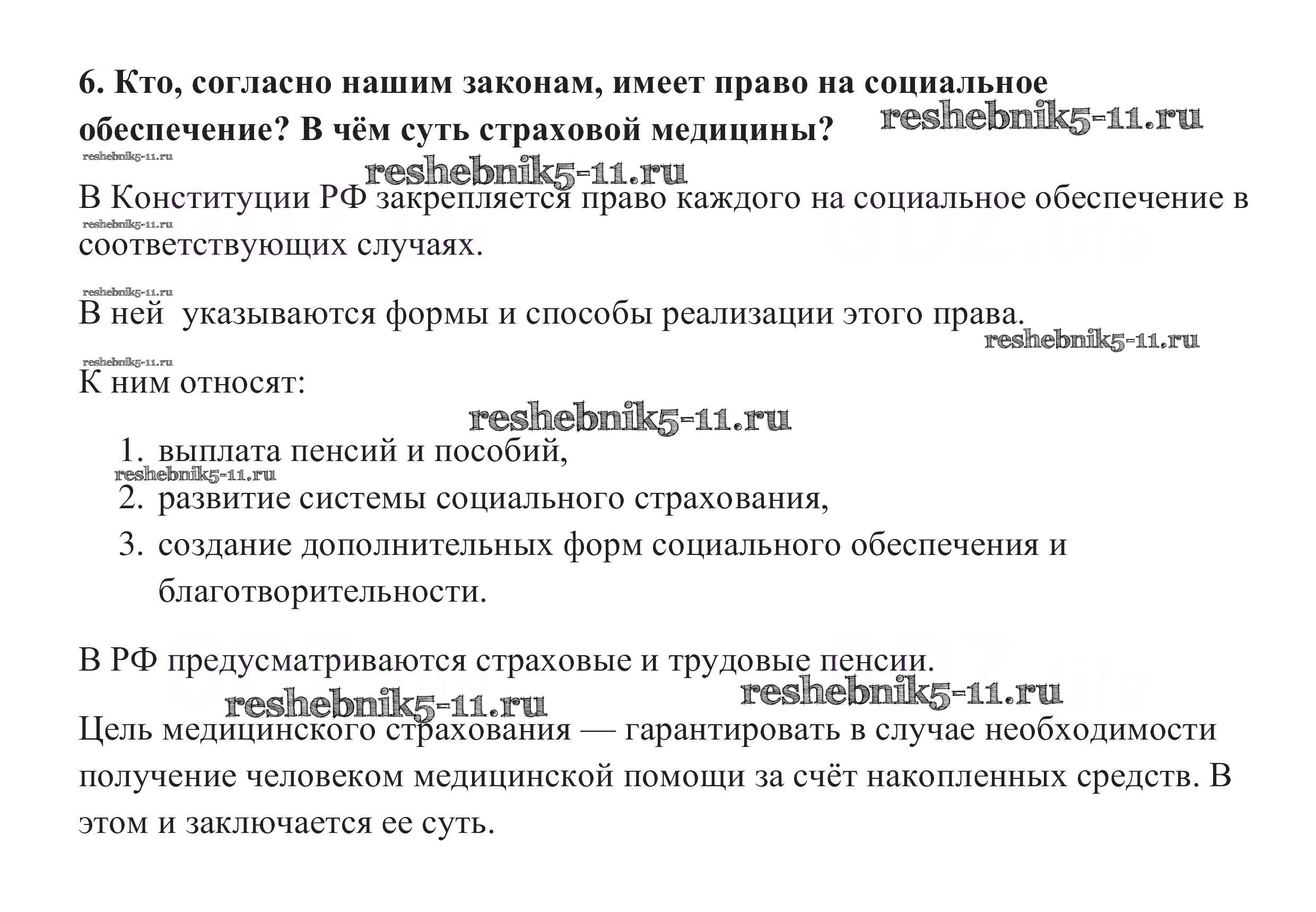 Готовая домашняя работа с ответами по Обществознанию за 9 класс Боголюбов, Матвеев, Жильцова Учебник УМК Просвещение 2014 ФГОС - Проверим себя 6