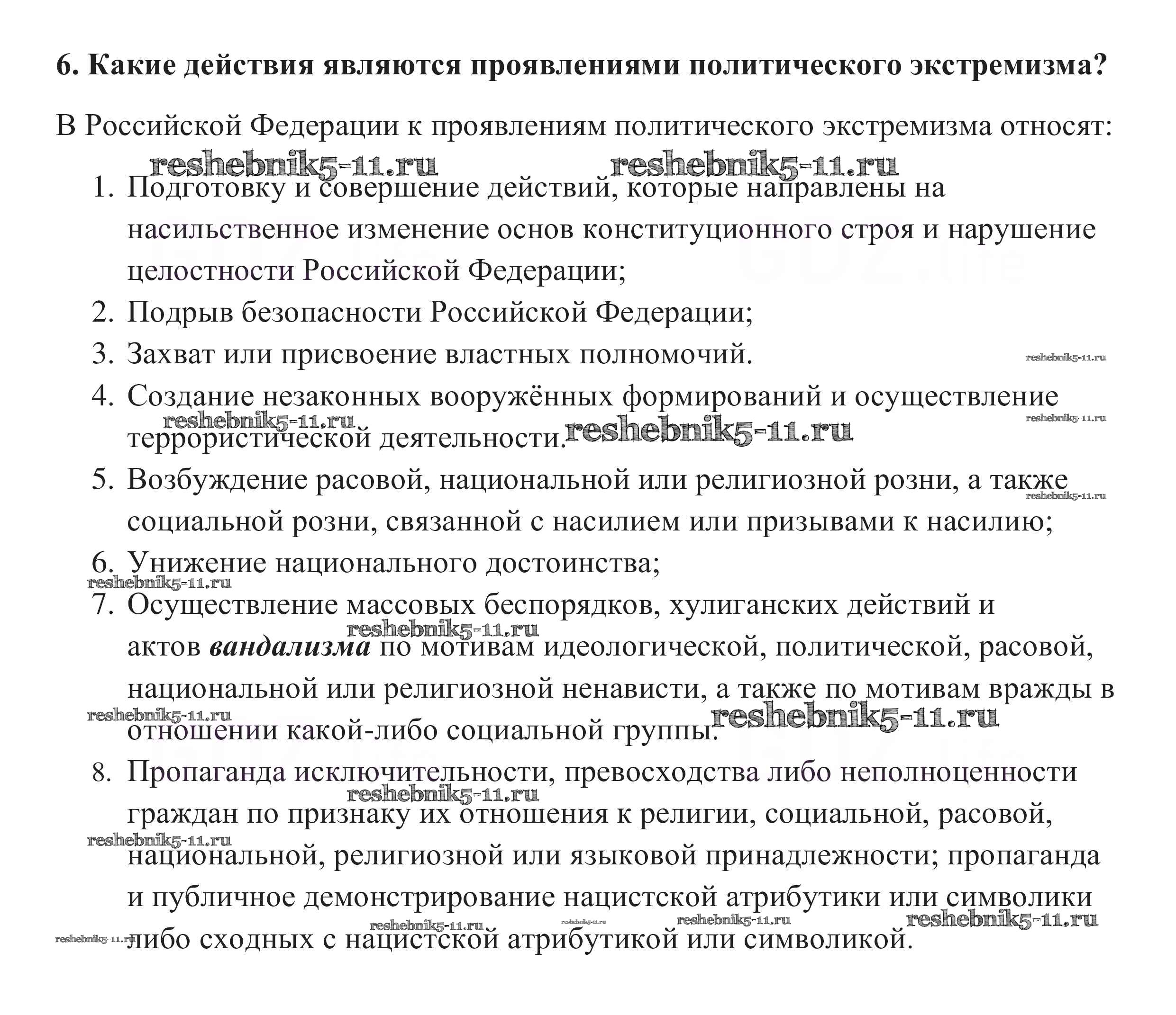 Готовая домашняя работа с ответами по Обществознанию за 9 класс Боголюбов, Матвеев, Жильцова Учебник УМК Просвещение 2014 ФГОС - Проверим себя 6