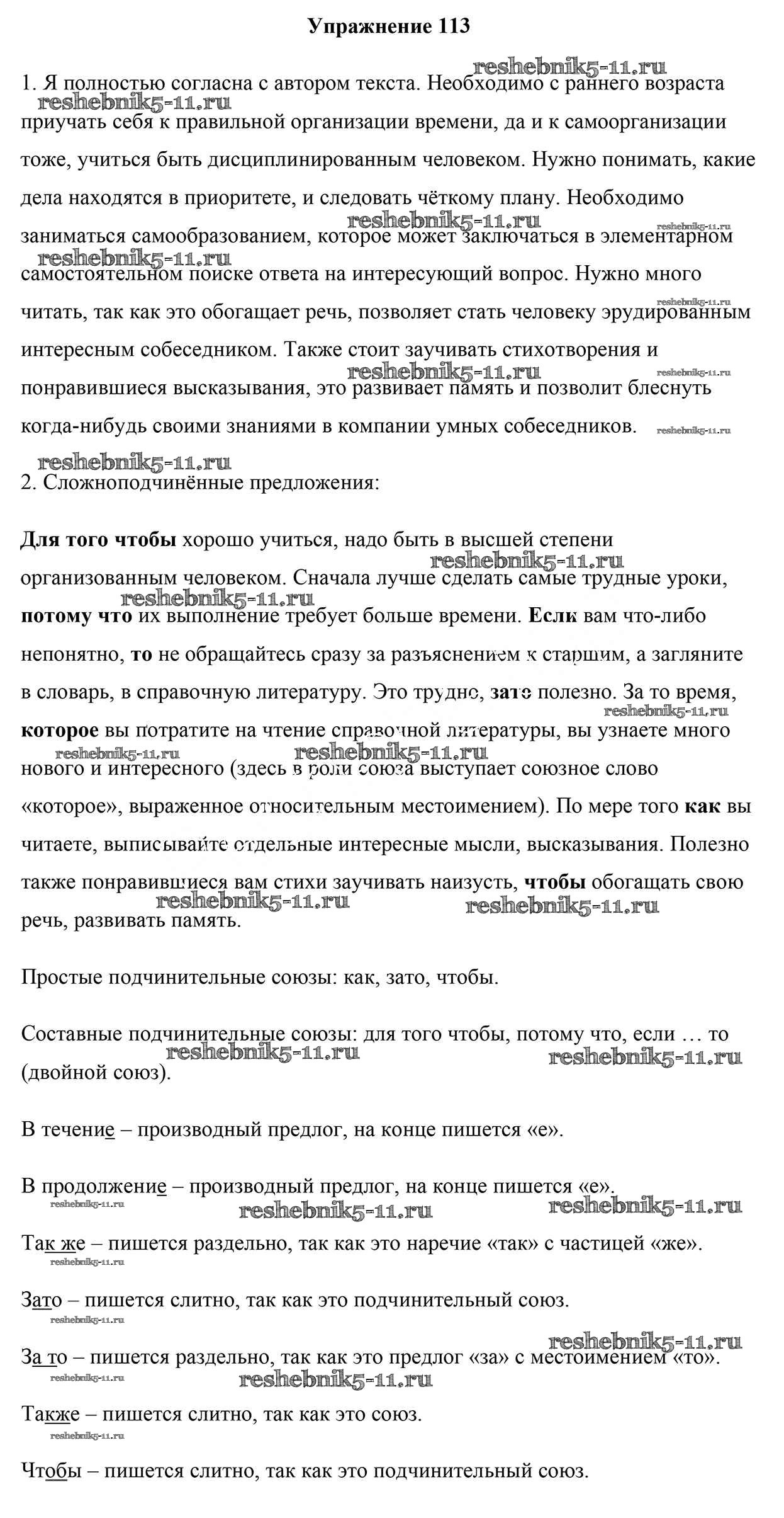 Готовая домашняя работа с ответами по Русскому языку за 9 класс Мурина, Литвинко, Долбик Учебник Национальный институт образования 2011 ФГОС - Упражнения 113