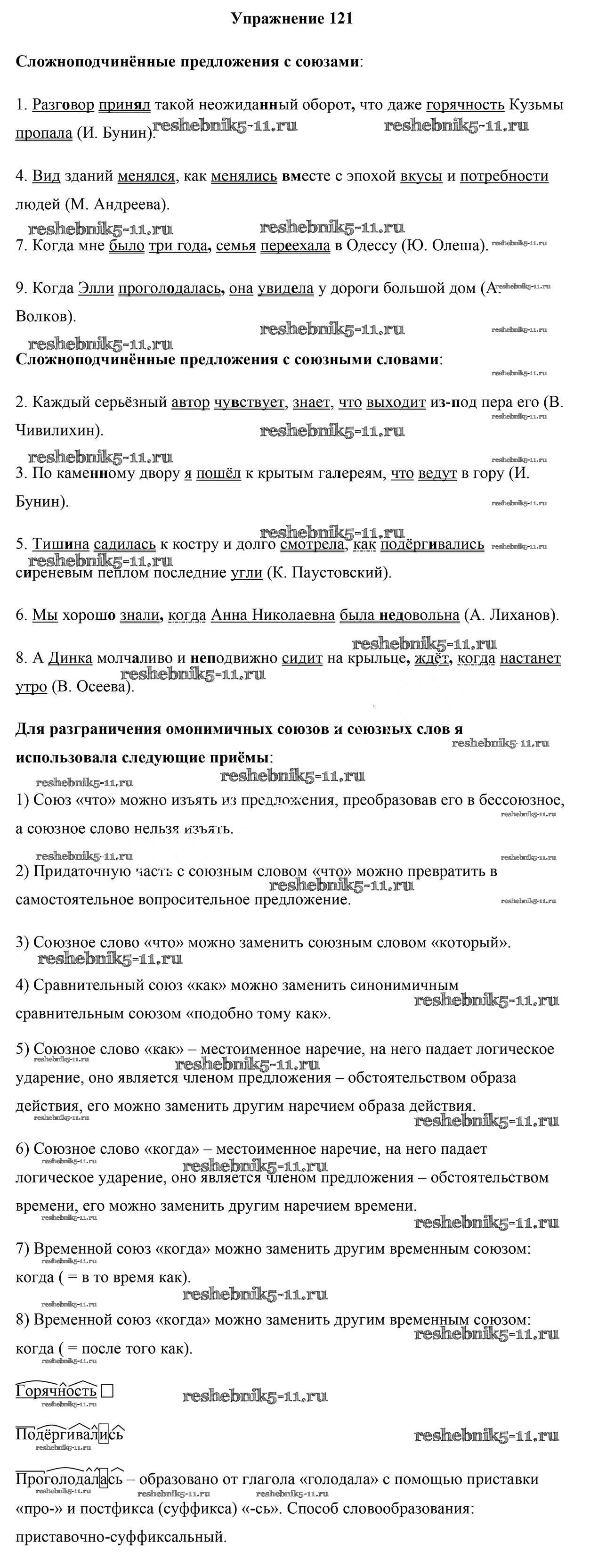 Готовая домашняя работа с ответами по Русскому языку за 9 класс Мурина, Литвинко, Долбик Учебник Национальный институт образования 2011 ФГОС - Упражнения 121