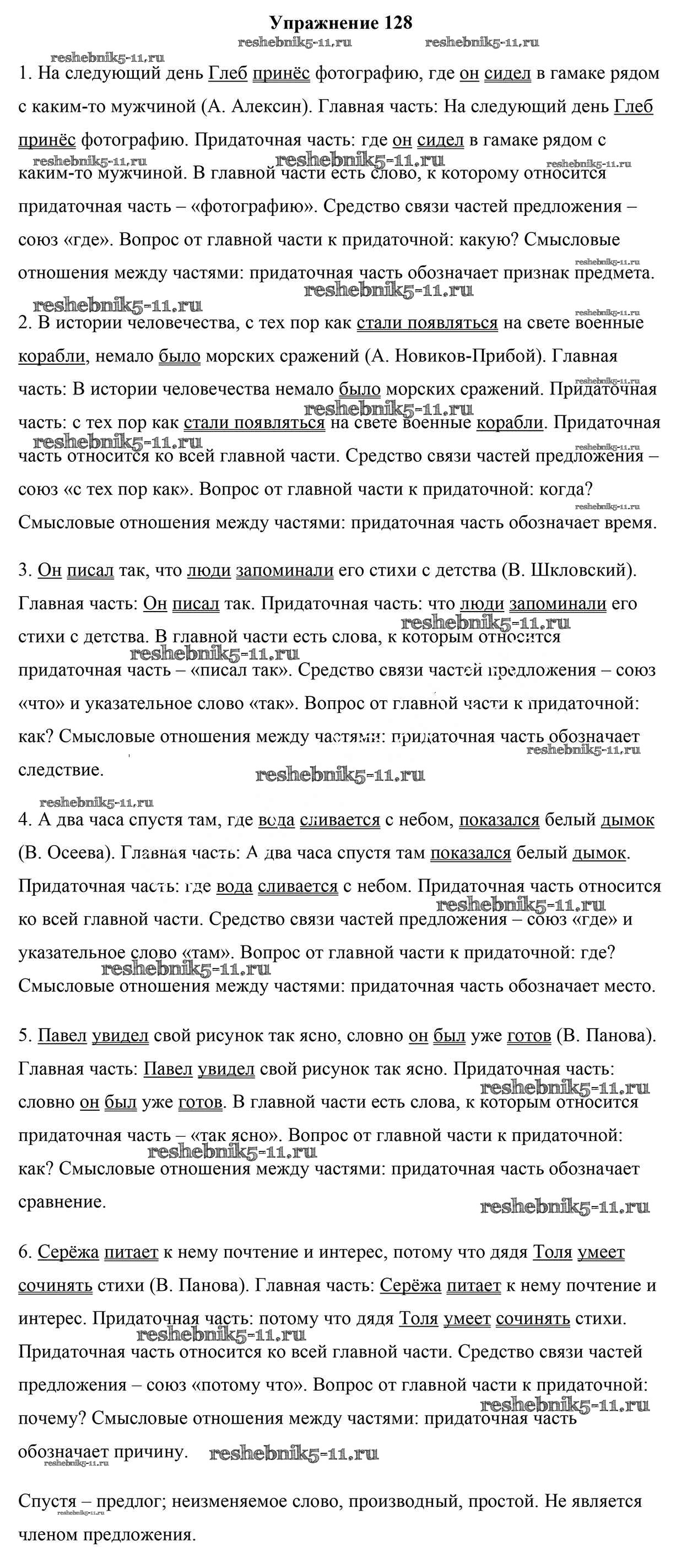 Готовая домашняя работа с ответами по Русскому языку за 9 класс Мурина, Литвинко, Долбик Учебник Национальный институт образования 2011 ФГОС - Упражнения 128