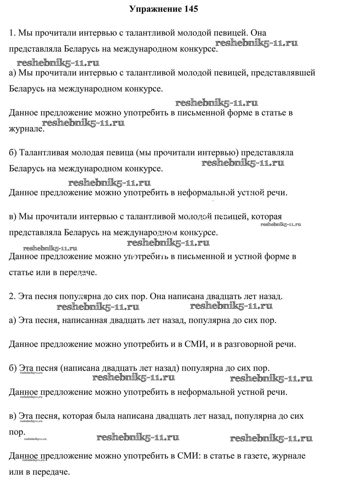Готовая домашняя работа с ответами по Русскому языку за 9 класс Мурина, Литвинко, Долбик Учебник Национальный институт образования 2011 ФГОС - Упражнения 145