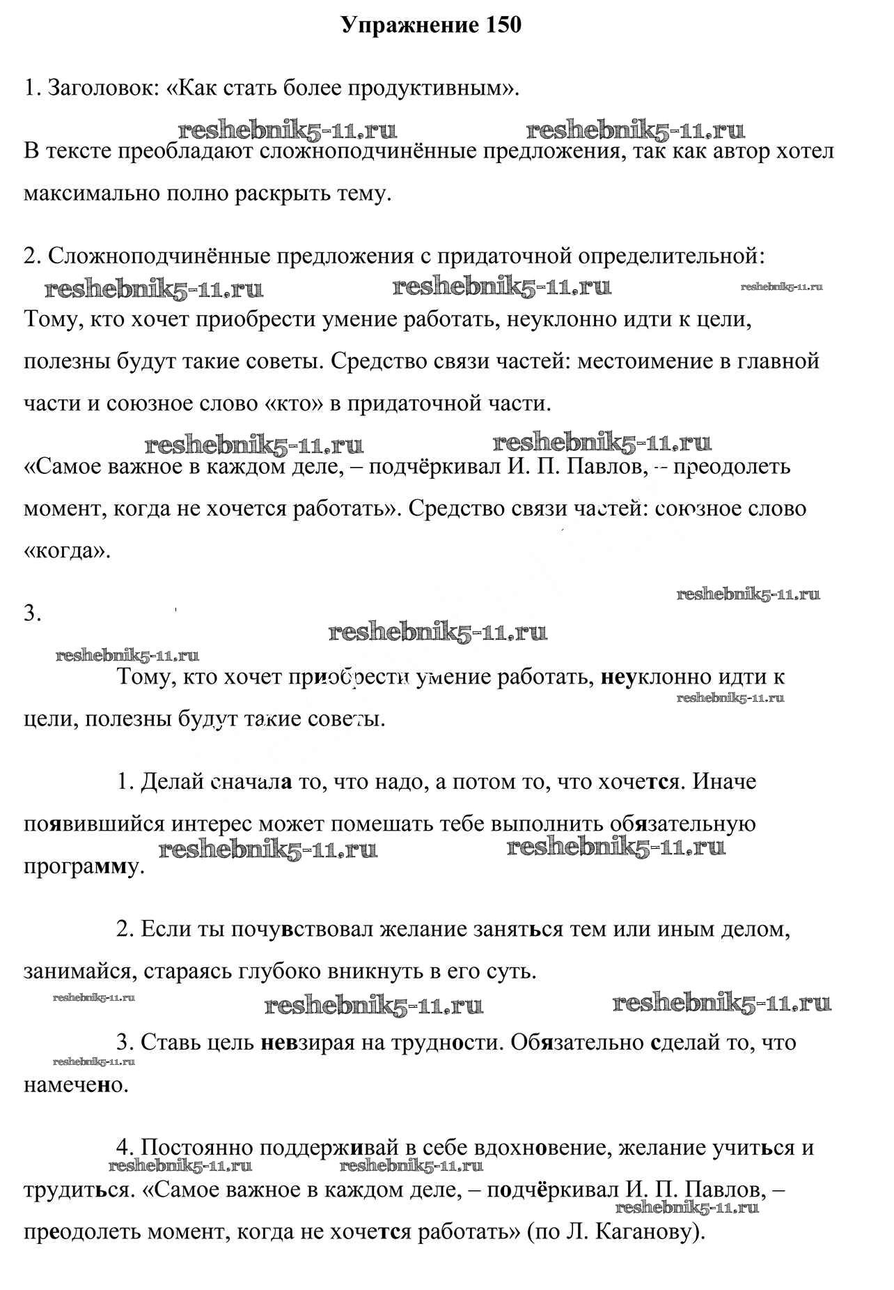 Готовая домашняя работа с ответами по Русскому языку за 9 класс Мурина, Литвинко, Долбик Учебник Национальный институт образования 2011 ФГОС - Упражнения 150