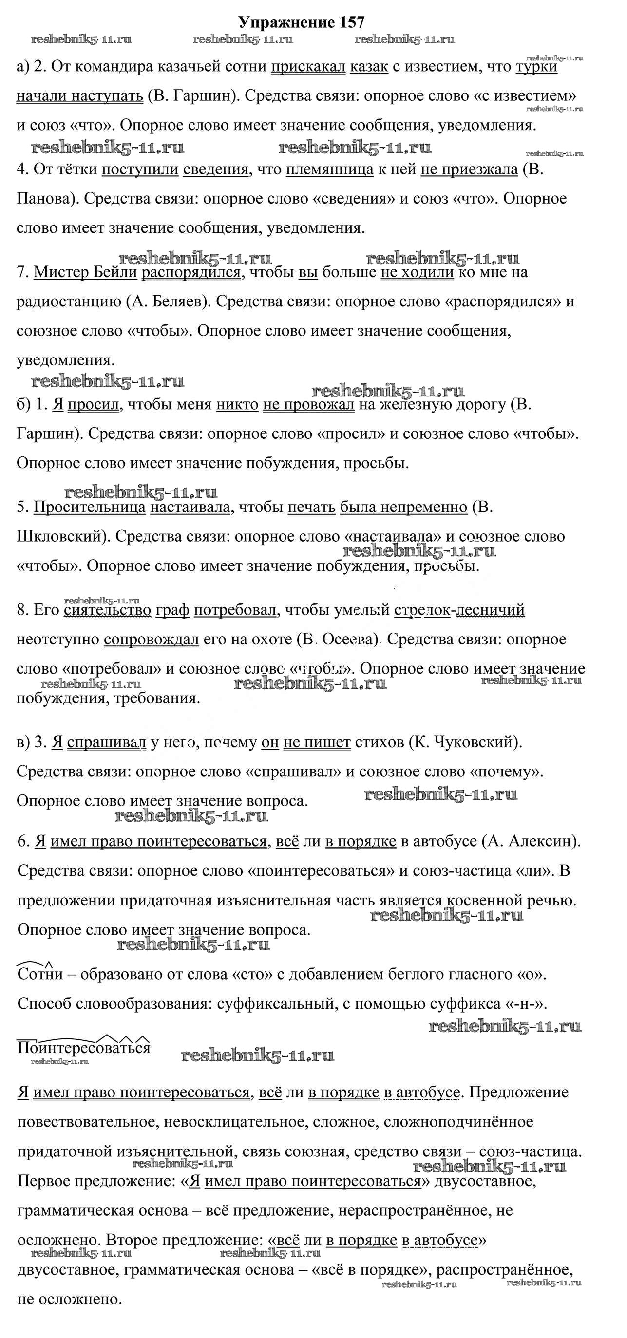 Готовая домашняя работа с ответами по Русскому языку за 9 класс Мурина, Литвинко, Долбик Учебник Национальный институт образования 2011 ФГОС - Упражнения 157