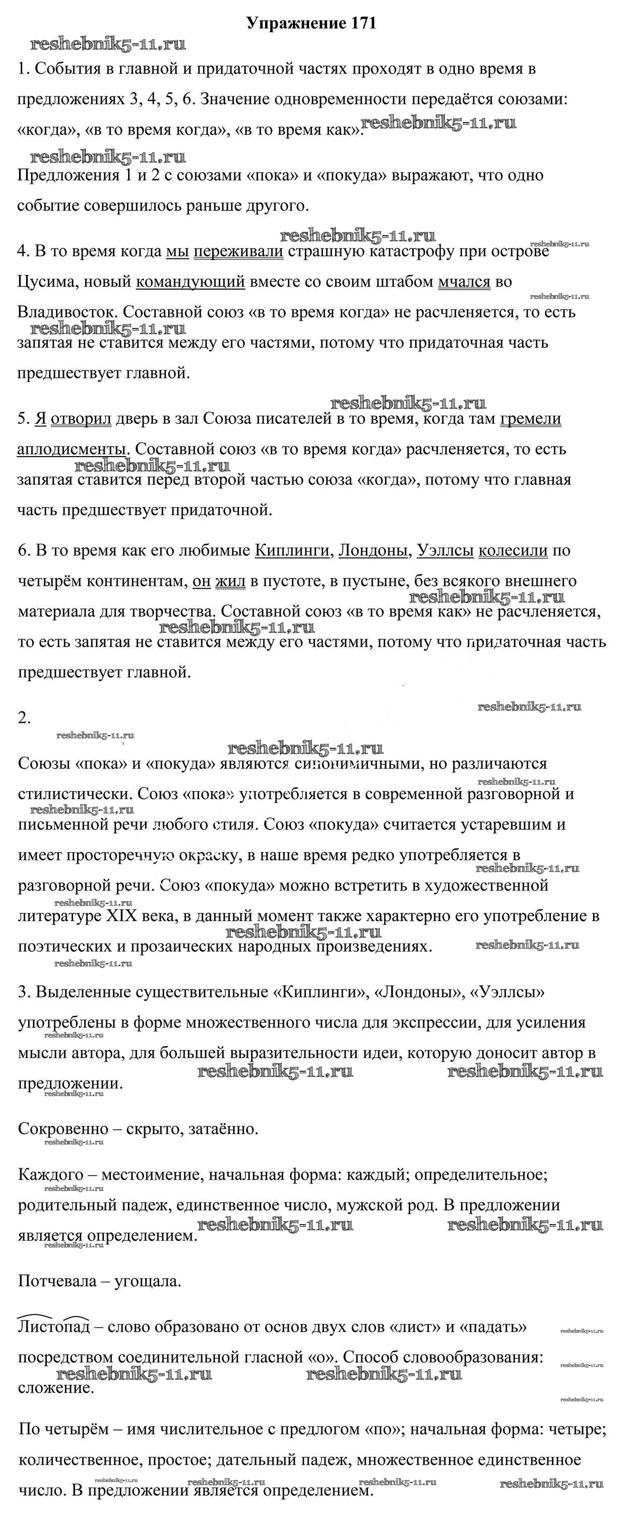 Готовая домашняя работа с ответами по Русскому языку за 9 класс Мурина, Литвинко, Долбик Учебник Национальный институт образования 2011 ФГОС - Упражнения 171