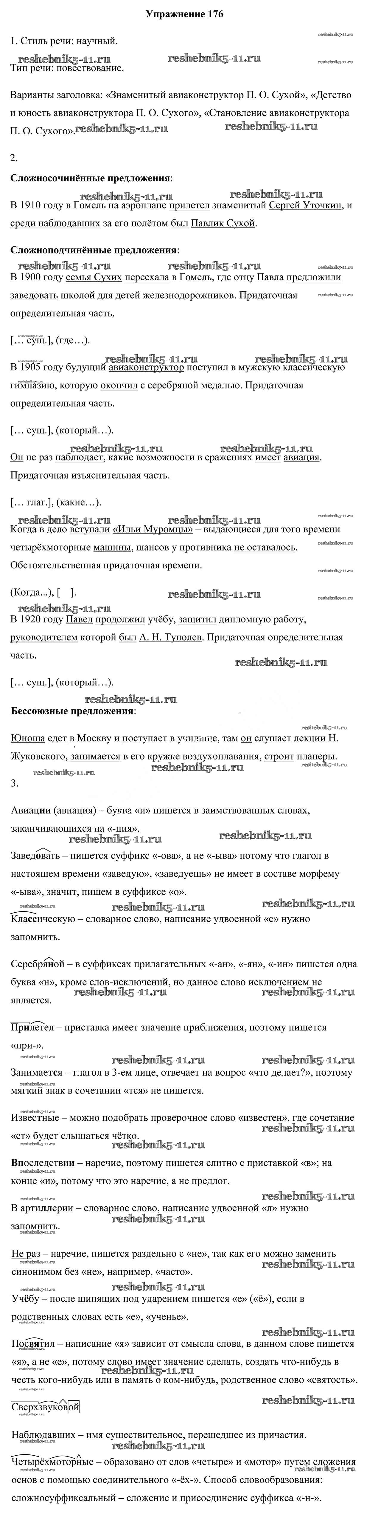 Готовая домашняя работа с ответами по Русскому языку за 9 класс Мурина, Литвинко, Долбик Учебник Национальный институт образования 2011 ФГОС - Упражнения 176