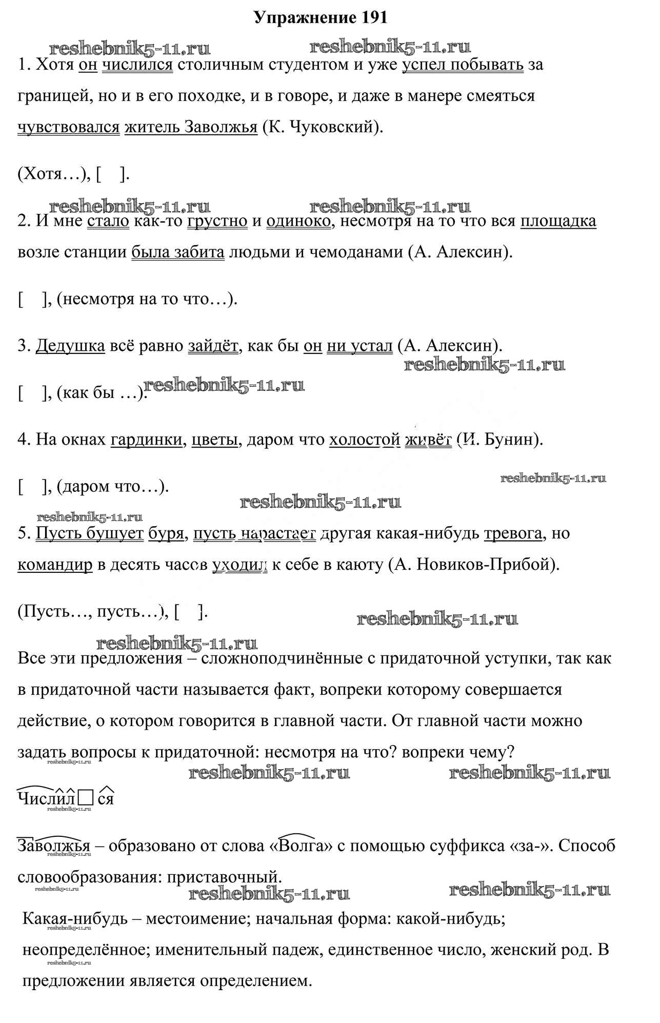 Готовая домашняя работа с ответами по Русскому языку за 9 класс Мурина, Литвинко, Долбик Учебник Национальный институт образования 2011 ФГОС - Упражнения 191