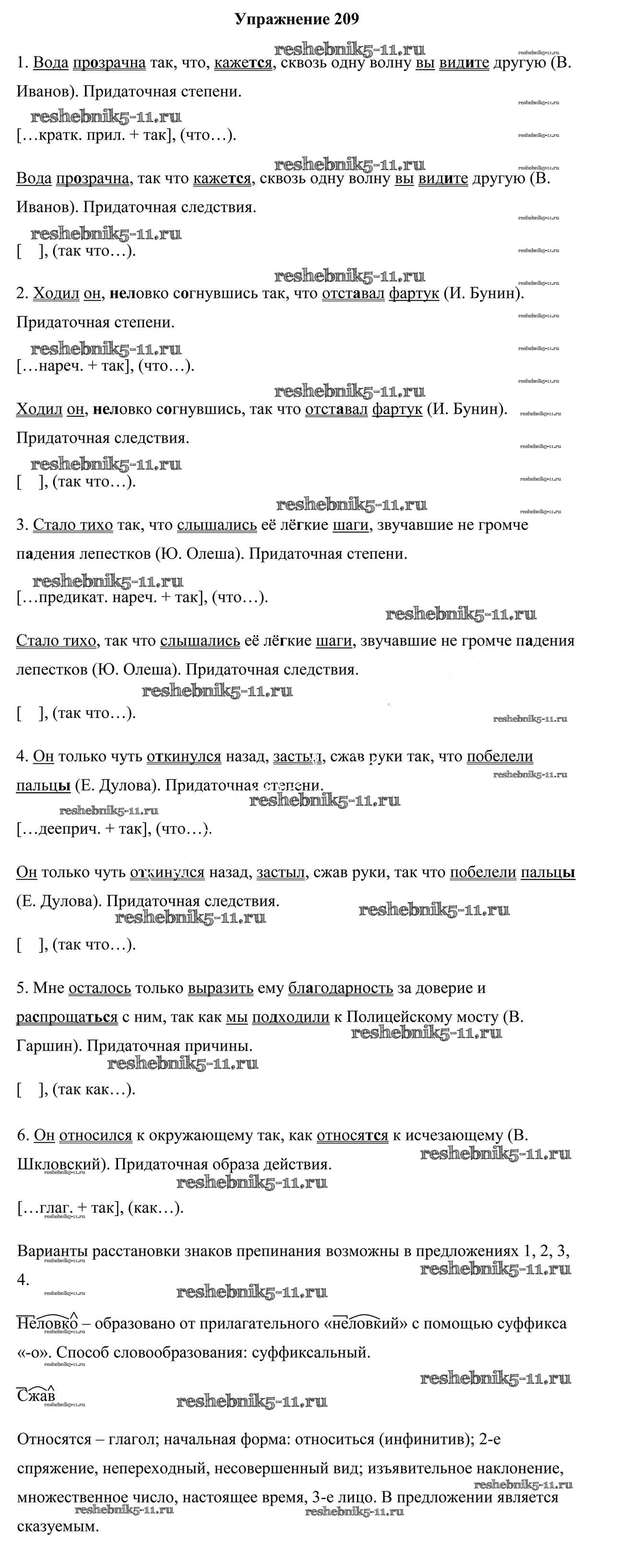Готовая домашняя работа с ответами по Русскому языку за 9 класс Мурина, Литвинко, Долбик Учебник Национальный институт образования 2011 ФГОС - Упражнения 209
