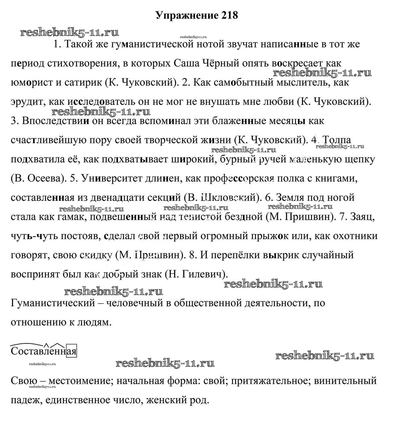 Готовая домашняя работа с ответами по Русскому языку за 9 класс Мурина, Литвинко, Долбик Учебник Национальный институт образования 2011 ФГОС - Упражнения 218
