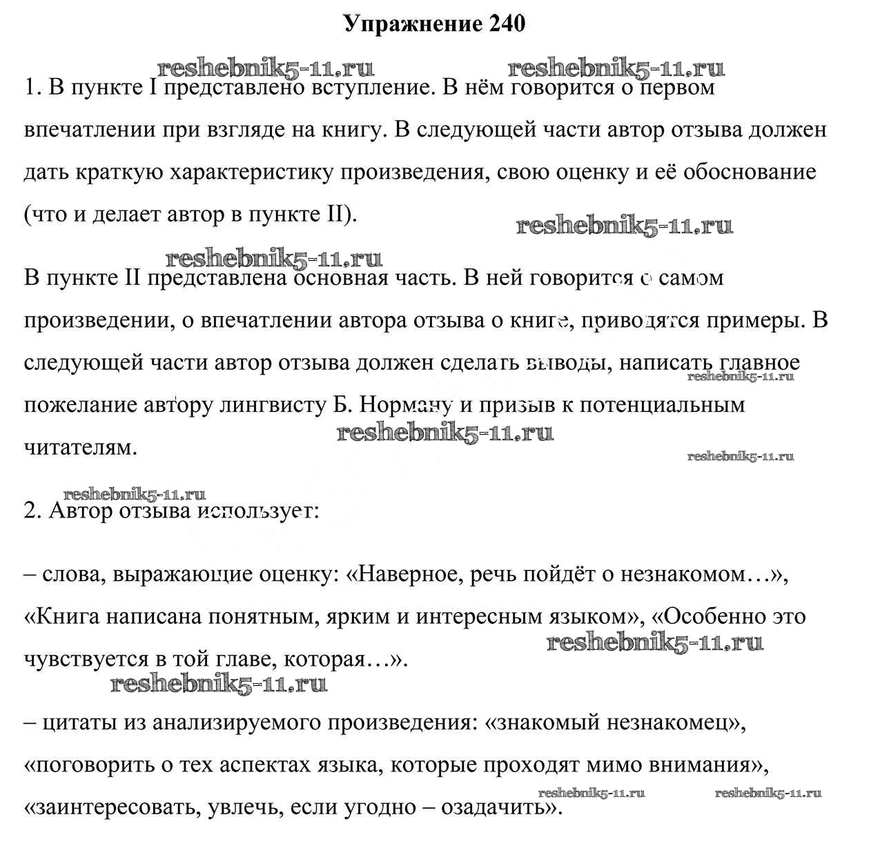 Готовая домашняя работа с ответами по Русскому языку за 9 класс Мурина, Литвинко, Долбик Учебник Национальный институт образования 2011 ФГОС - Упражнения 240