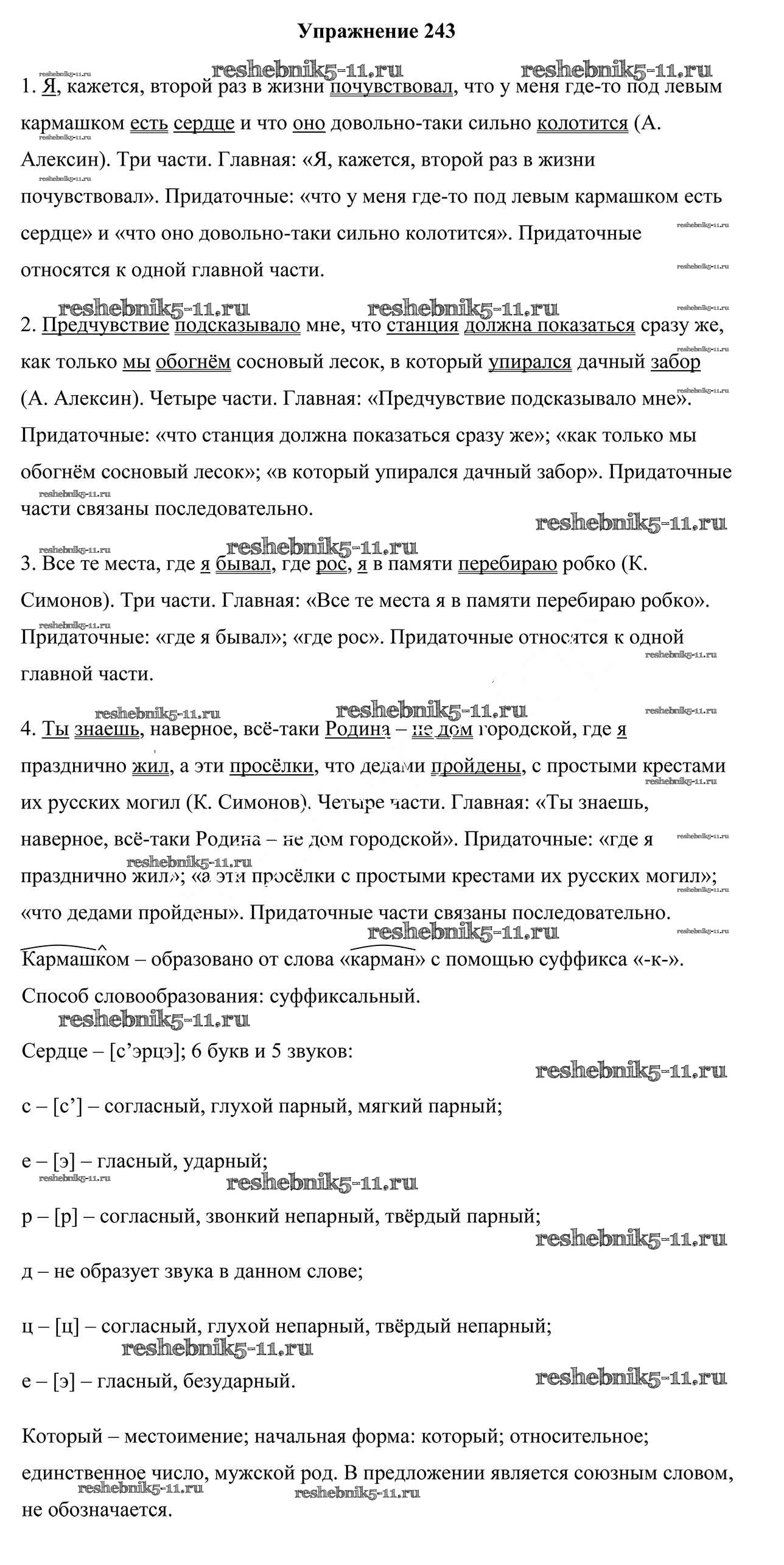 Готовая домашняя работа с ответами по Русскому языку за 9 класс Мурина, Литвинко, Долбик Учебник Национальный институт образования 2011 ФГОС - Упражнения 243