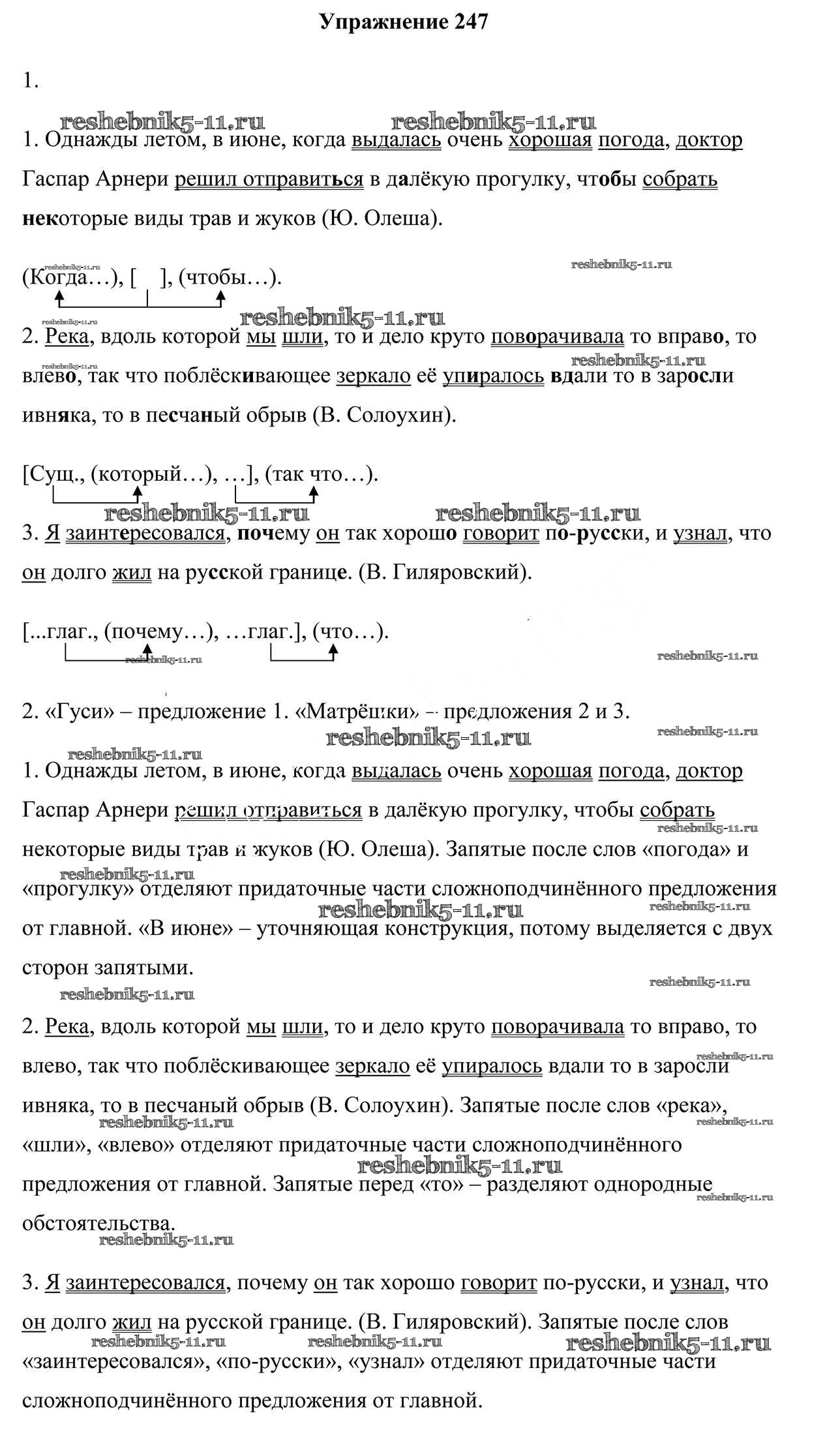 Готовая домашняя работа с ответами по Русскому языку за 9 класс Мурина, Литвинко, Долбик Учебник Национальный институт образования 2011 ФГОС - Упражнения 247