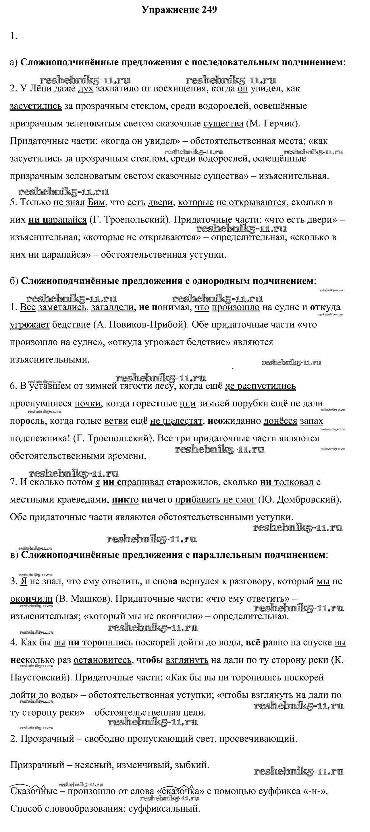 Готовая домашняя работа с ответами по Русскому языку за 9 класс Мурина, Литвинко, Долбик Учебник Национальный институт образования 2011 ФГОС - Упражнения 249