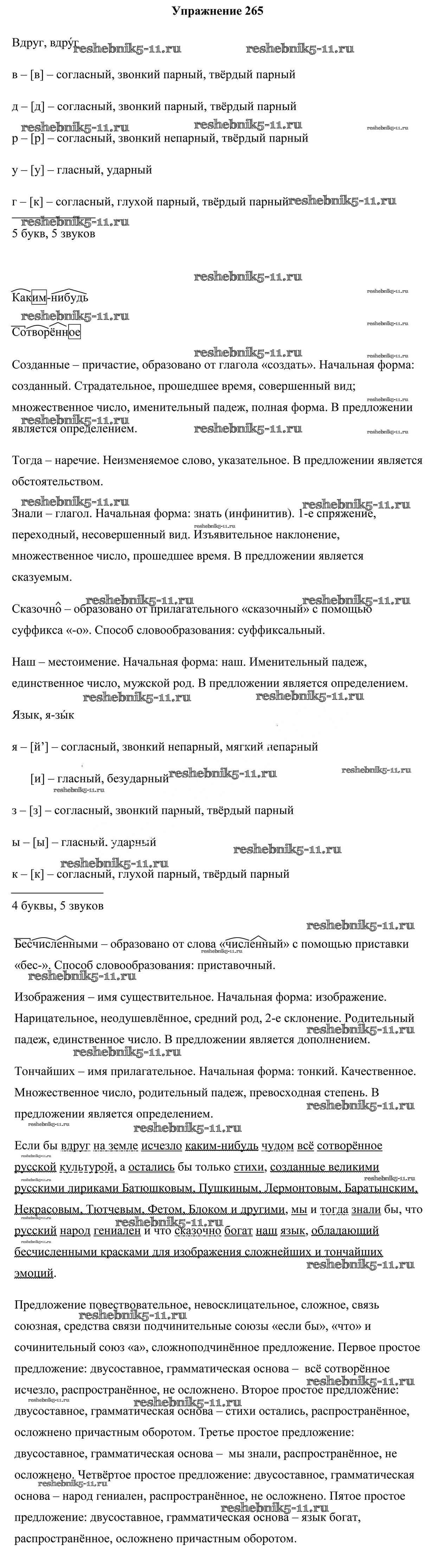 Готовая домашняя работа с ответами по Русскому языку за 9 класс Мурина, Литвинко, Долбик Учебник Национальный институт образования 2011 ФГОС - Упражнения 265