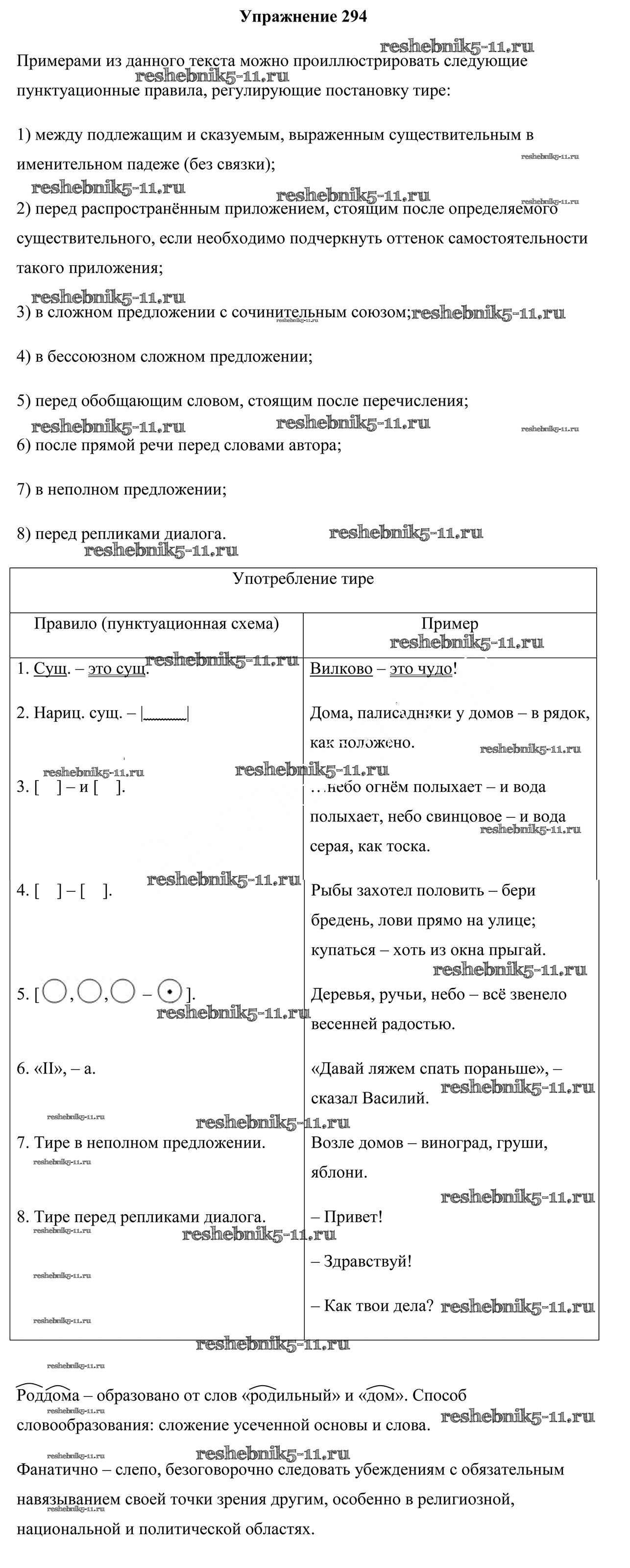 Готовая домашняя работа с ответами по Русскому языку за 9 класс Мурина, Литвинко, Долбик Учебник Национальный институт образования 2011 ФГОС - Упражнения 294