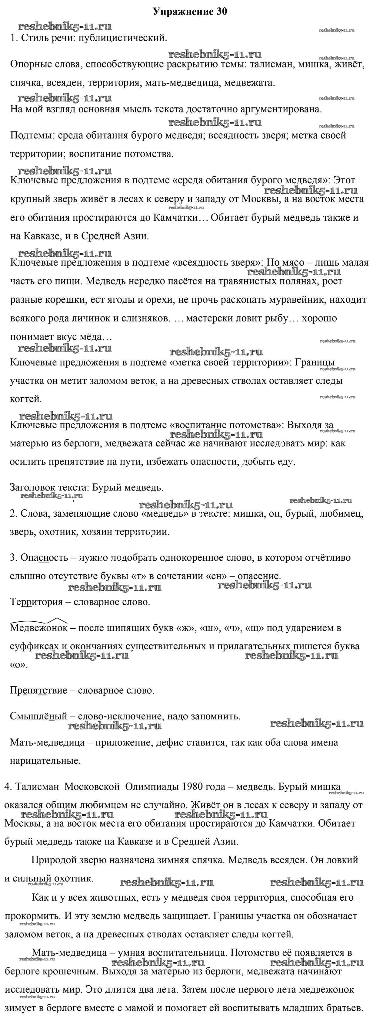 Готовая домашняя работа с ответами по Русскому языку за 9 класс Мурина, Литвинко, Долбик Учебник Национальный институт образования 2011 ФГОС - Упражнения 30