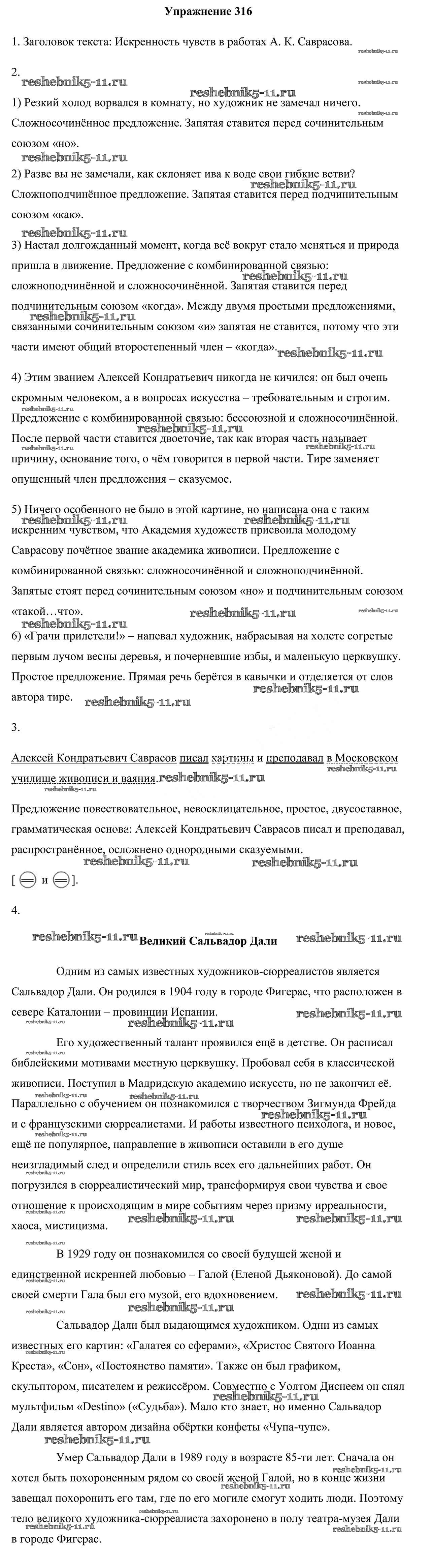 Готовая домашняя работа с ответами по Русскому языку за 9 класс Мурина, Литвинко, Долбик Учебник Национальный институт образования 2011 ФГОС - Упражнения 316