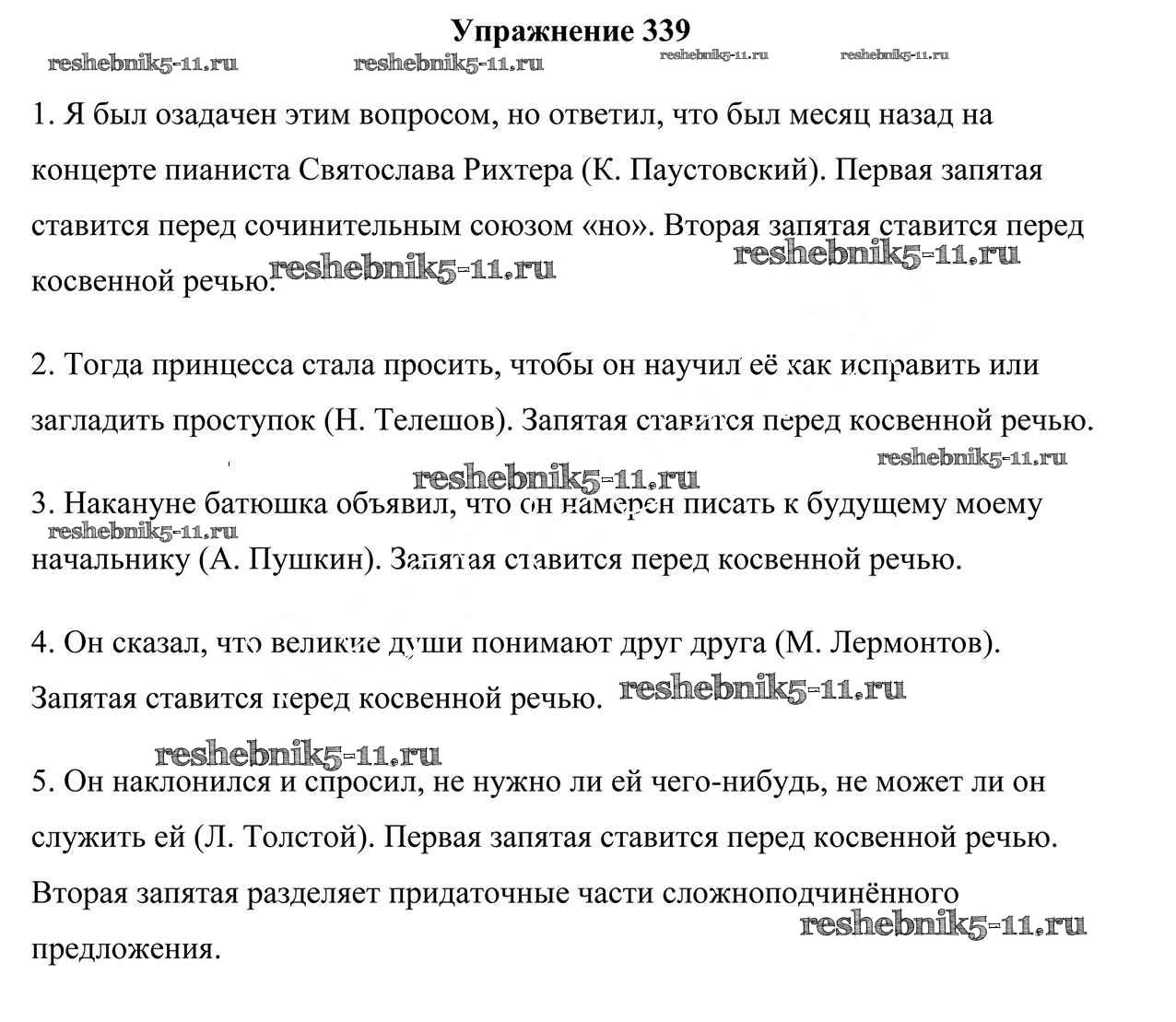 Готовая домашняя работа с ответами по Русскому языку за 9 класс Мурина, Литвинко, Долбик Учебник Национальный институт образования 2011 ФГОС - Упражнения 339