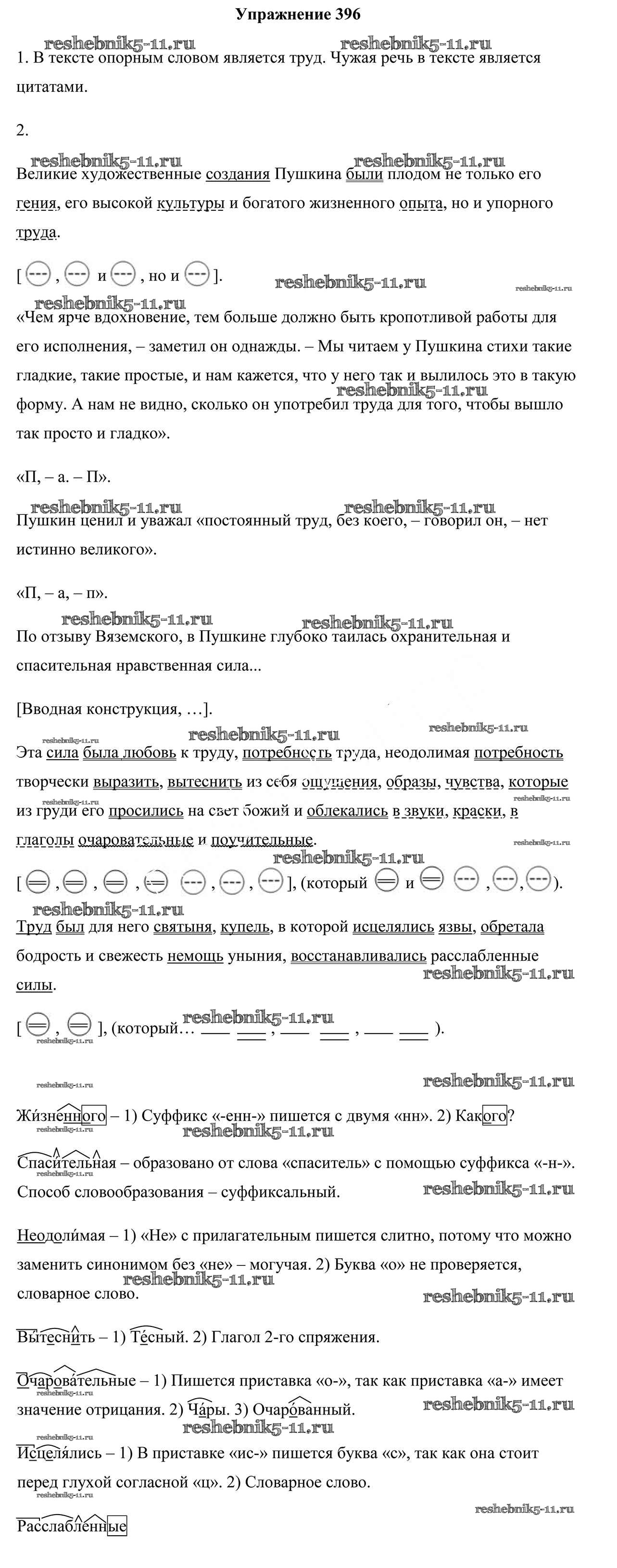 Готовая домашняя работа с ответами по Русскому языку за 9 класс Мурина, Литвинко, Долбик Учебник Национальный институт образования 2011 ФГОС - Упражнения 396