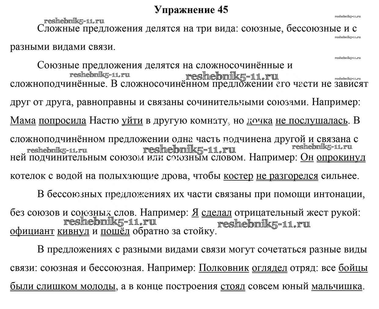 Готовая домашняя работа с ответами по Русскому языку за 9 класс Мурина, Литвинко, Долбик Учебник Национальный институт образования 2011 ФГОС - Упражнения 45