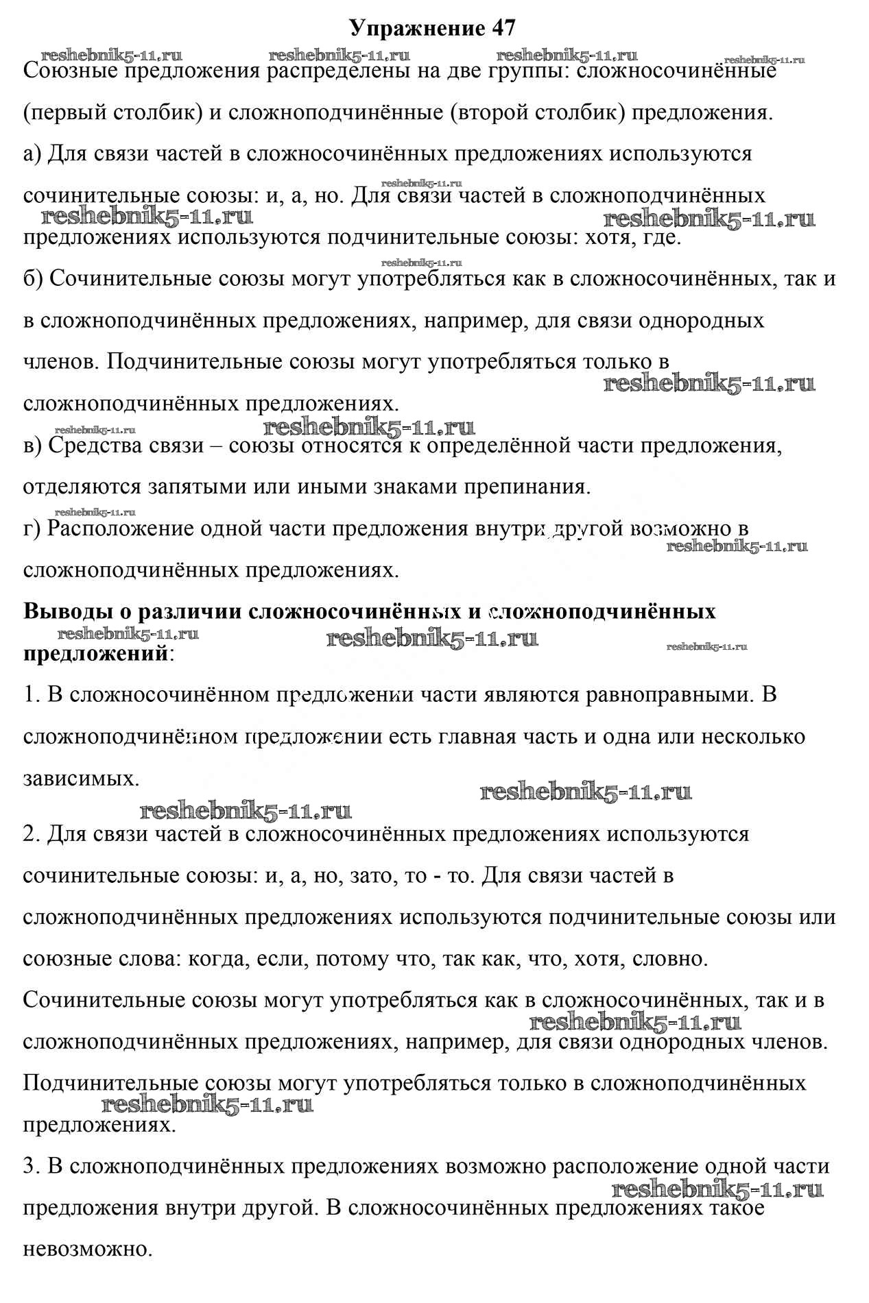 Готовая домашняя работа с ответами по Русскому языку за 9 класс Мурина, Литвинко, Долбик Учебник Национальный институт образования 2011 ФГОС - Упражнения 47