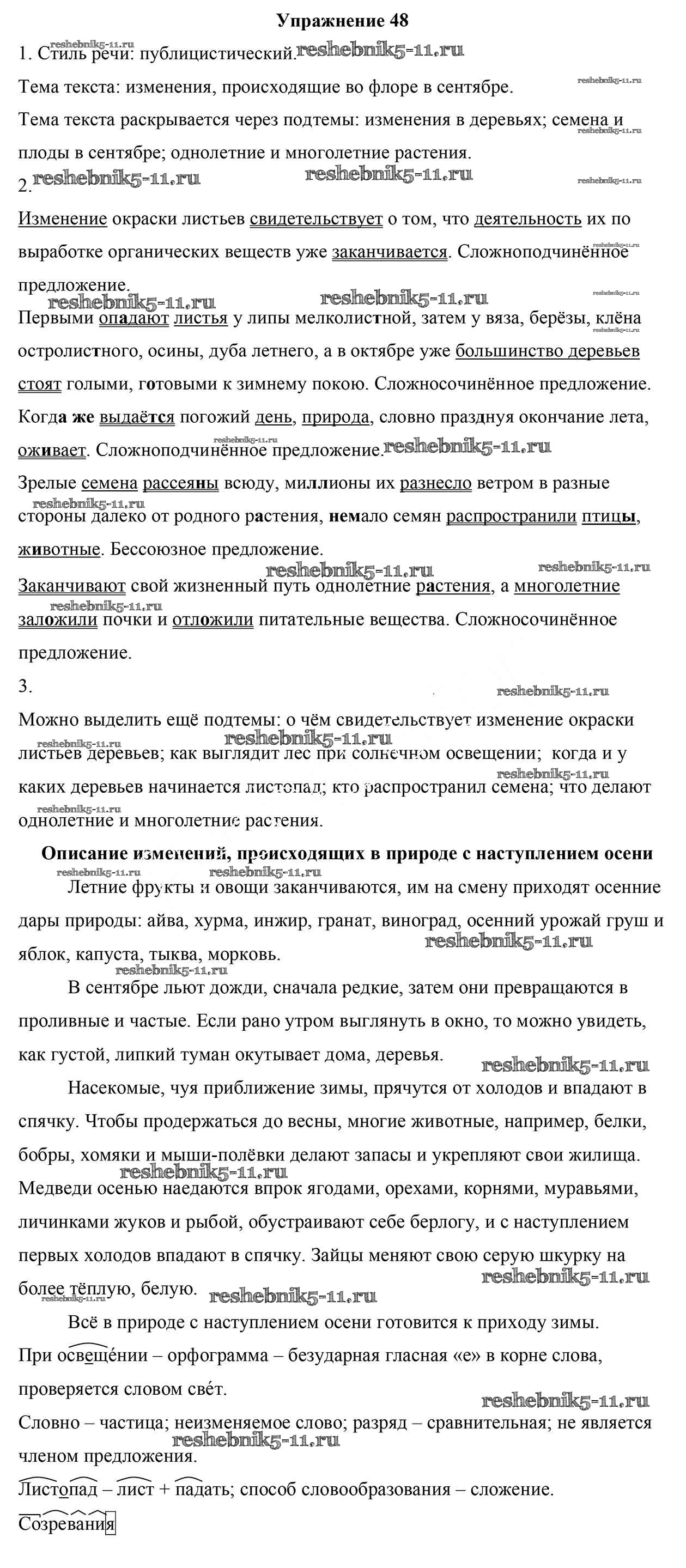 Готовая домашняя работа с ответами по Русскому языку за 9 класс Мурина, Литвинко, Долбик Учебник Национальный институт образования 2011 ФГОС - Упражнения 48